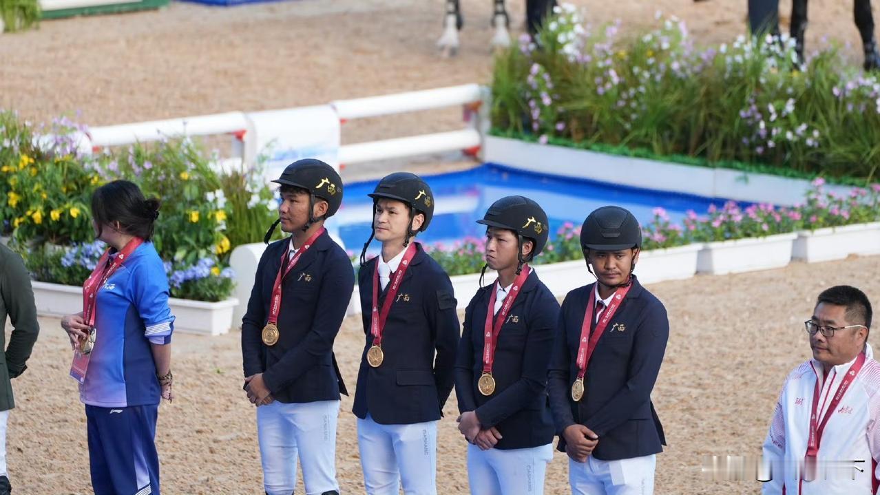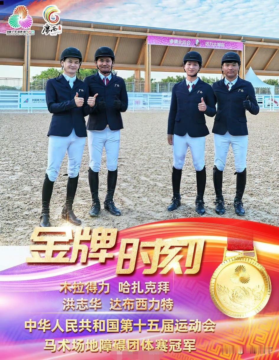 懵了吧,广西马术队夺冠了,11月17日,在全运会马术场地障碍团体赛中,广西运动员木拉得力、哈扎克拜、洪志华、达布西力特在激烈的角逐中发挥出色、勇夺冠军,这是广西运动员在全运会历史上的首枚马术金牌! 有网友好奇,都没听说过广西养马,怎么就冠军了,我告诉你,广西不仅马术厉害,猜马和买马也是一绝,德保矮马也是马呀!我们小时候骑马上学可不是吹的。 广西不但骑马厉害,骑牛也不在话下,如果有骑水牛比赛!估计我们广西从70后到00后都能拿第一[笑哭][笑哭][笑哭]