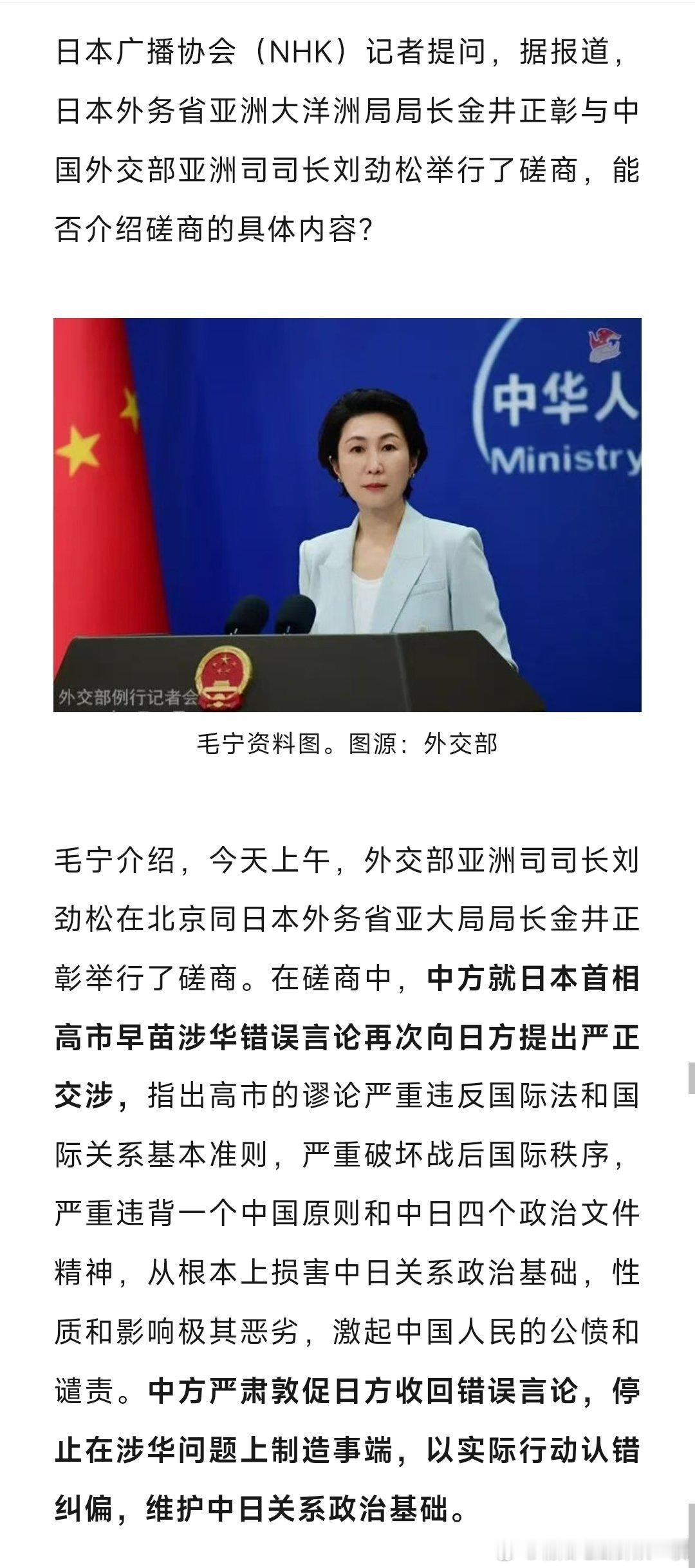今天,外交部亚洲司司长刘劲松与日本外务省官员金井正彰会面。14时左右,金井正彰一行离开中国外交部。