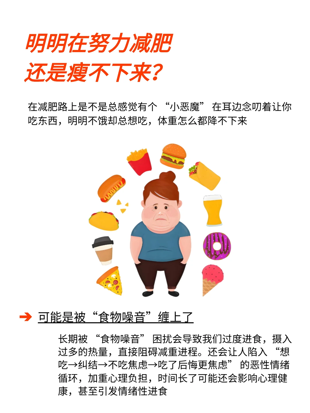 ⭕明明刚吃完晚饭,刷到一条美食测评视频,就忍不住想点外卖 ⭕加班到深夜,明明不饿,却总惦记着楼下便利店的关东煮 ⭕减肥计划执行到第3天,满脑子都是炸鸡🍟、可乐,意志力根本扛不住…… 如果你也常被这些与饥饿无关的进食念头困扰,或许不是你 “不够自律”,而是被 “食物噪音” 缠上了 什么是 “食物噪音”? ➡️它可不是真的声音,而是一种大脑中难以抑制的、持续出现的进食念头和冲动。和我们身体真正的饥饿感有本质区别 ⏺️饥饿感:进食满足能量需求后就会停止 ⏺️食物噪音:想吃东西的念头就会在脑海中挥之不去,就算刚刚吃饱,这种想法也可能一直存在 如果我们长期被食物噪音困扰,那对我们控制体重的影响可太大了。它会让我们直接阻碍减重进程。而且还会让人陷入 “想吃→纠结→不吃焦虑→吃了后悔更焦虑” 的恶性情绪循环 ㊙️怎么才能摆脱食物噪音的纠缠呀? 首先要学会区分真正的饥饿和食物噪音 每次想吃东西前,先问问自己 “我是真的饿了吗?”如果不是,可以用喝水、散步🚶🏻‍♀️、和朋友聊天等方式转移注意力 其次,保持营养平衡,多吃像瘦肉、蔬菜、全谷物等,这些食物能维持血糖稳定,减少大脑的 “食物信号误报” 另外,需要科学的工具来解决了,有研究表明,减重版司美格鲁肽就是那个静音键🔇,它可以来实现“降噪”。它的原理是调控大脑食欲中枢,增强↑饱腹感信号传递,让大脑在摄入更少食物时就接收到 “吃饱” 的信息,从源头减少↓进食渴望;同时延缓胃排空,减慢↓食物在胃肠道的消化速度,延长饱腹感持续时间⏰,进一步降低脑海中关于食物的念头频率 最后情绪管理也很关键,压力大或者心情低落的时候,我们更容易受到食物噪音的干扰,可以通过冥想、运动、阅读📖等方式调节情绪,减少对食物的依赖