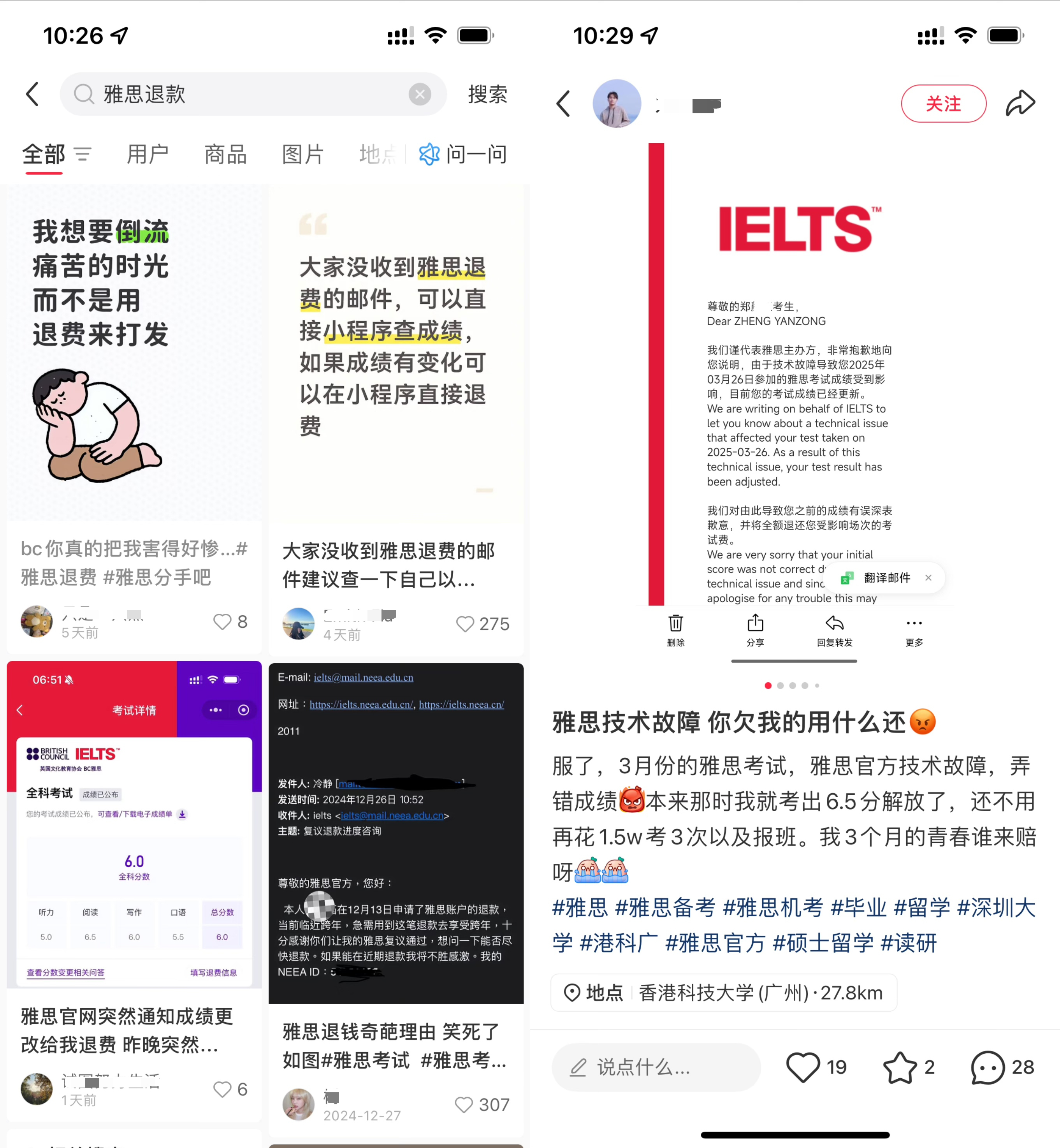 【雅思承认技术故障错判成绩,波及两年考期】近日,雅思考试因成绩判定出现技术故障,启动大规模退费与成绩更新,引发广泛关注。11月18日,雅思主办方英国文化教育协会向南都记者确认,该故障影响时段为2023年8月至2025年9月,涉及“一小部分考生”,目前系统已修复并全面启动复核与退款机制。在社交平台,相关讨论持续升温。南都记者在小红书上以“雅思改分”“雅思退款”为关键词搜索,发现网友对此评价褒贬不一。一位郑州考生在社交平台上说,他于2024年在不同时间参加了两场雅思考试,当时成绩是6.5分,已经达到了学校要求,便没有再关注。11月12日他在收到雅思官方一封退费通知邮件及两条短信后,登录官方平台核实详情,竟发现自己参加的两场考试均符合退费条件,这意味着他将获得两笔全额考试费退款。“这简直是天降横财。”他形容道。有人收获“意外之财”,也有人收获“分数上涨”。江苏徐女士表示,自己并未收到退款邮件,而是在官方小程序上查询时,发现自己去年某次考试的口语分数从5.5分被悄然更新到了6.0分。“不过,虽然分数变高是好事,但如果我没看到,用旧的成绩单申请,会不会被认定为材料造假?”徐女士对雅思处理方式表示出担忧。然而,在此次雅思大规模分数修正事件中,部分个体所承受的代价可能远非“全额退费”可以弥补。一位广东考生表示,去年三战雅思未达目标分数,在耗尽心力与金钱后,最终无奈放弃了攻读研究生的理想。近日却被告知其中一次成绩本已达标,“如果当时就看到这个分数,我的人生路径或许完全不同。”根据雅思考试主办方的回复,此次事件的根本原因被归咎于一起“技术故障”。该故障影响了自2023年8月起至2025年9月止,长达两年多时间内的考生成绩。雅思主办方强调,在此期间,超过99%的雅思考试未受影响,且故障对当前正常运行的考试不造成影响,但未在回复中提供受影响考生的具体人数。据雅思考试主办方英国文化教育协会公开数据,2023年全球雅思考生超过400万人次,创历史新高。此次事件波及25个月周期内的考生群体,官方表示,99%以上考生的成绩没有受到影响,预计影响人数在8万人次以内。目前,雅思官方已承诺为所有成绩受影响的考生办理全额退费。据悉,单次雅思考试的费用,以中国大陆地区为例,2025年普通雅思考试费用为2170元人民币。雅思方面还明确了具体善后流程:考生需通过雅思官方微信小程序查询更新成绩、确认邮寄地址以获取新版纸质成绩单,退费需在2026年5月1日前通过小程序办理,预计30个工作日到账。