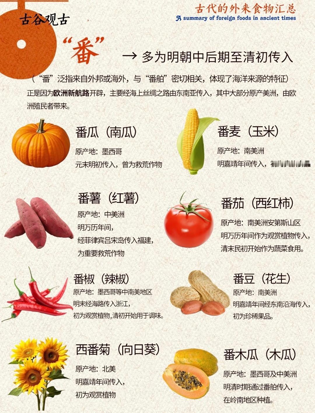 我们现在吃的这些食物历史上都是从哪里来的?哪些是原产的...