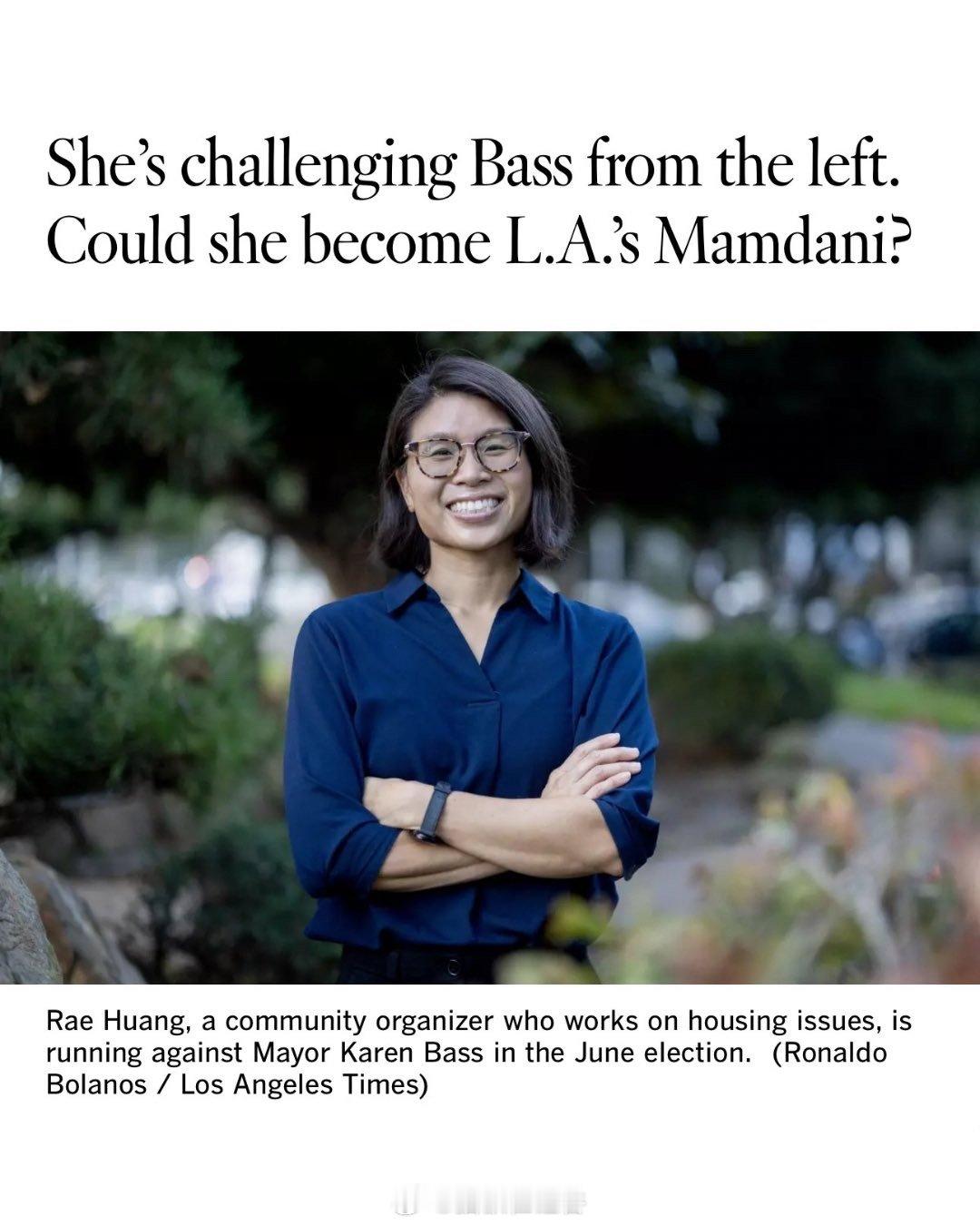 激进左派曼达尼赢得纽约市长选举,大大激励了其他城市的民主社会主义者参选。43岁的Rae Huang(看名字是个华裔)宣布参选洛杉矶市长,她将与前洛杉矶联合学区总监Austin Beutner以及现任市长Bass展开竞争。虽然目前知名度不高,但很难说洛杉矶是否会出现纽约那样的大冷门,毕竟现任市长Bass因处理今年1月Palisades大火不当以及未能充分解决高房价问题而受到批评。Huang是社区组织者和牧师,现任Housing Now California(加州住房联盟)副主任。洛杉矶有400万人口,是美国第二大城市,此前从未有过亚裔市长。Huang表示:“我将对抗建制派和亿万富翁阶层,不会接受任何企业的捐款” 。她在竞选启动演讲中表示:“在这个新时代,我们将让所有人都能负担住房。我们将让公共交通免费、安全、快速。我们将确保工资和工作有尊严” 。她的核心政策包括: • 普遍住房(universal housing),增加混合收入住房、简化许可流程、保护租户免遭流离失所。 • 扩大无家可归者的支持性住房、增加心理健康服务、改善城市在无家可归问题上的协调响应 T • 免费公共交通,改善政府透明度、社区伙伴关系、财政问责。 • 改善洛杉矶警察局与社区关系、解决空气质量和城市高温等环境问题 。