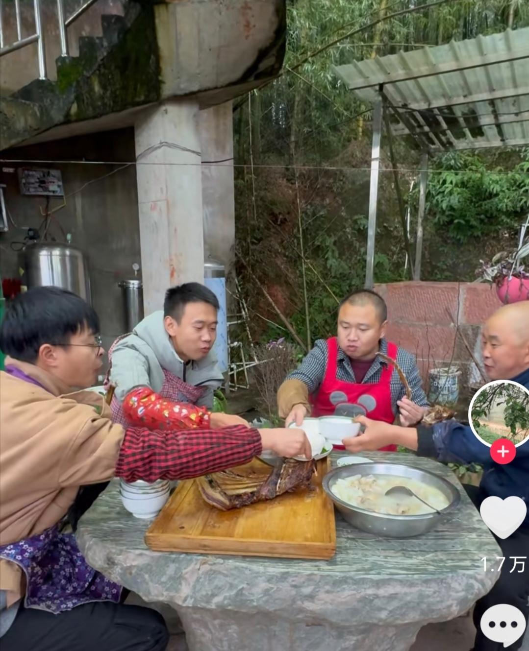 农村四哥在寒冷的日子里温暖地过着日子,还得是四哥啊![赞][赞][赞] 买了半边羊的四哥,叫上弟兄们,叫上幺舅,又是一餐。 炖羊肉,烤羊排,喝羊汤,吃血旺。 滋滋冒油的羊排透出香气,香到了粉丝的鼻子里![呲牙][呲牙] 四哥的日子都在农村里居多,这小日子过得烟火气很旺, 还要建别墅的四哥也是为了老爹妈享受一下,人老了能过上最幸福的日子。 粉丝都可惜四哥没有生出一个儿子, 养一个儿子传宗接代是农村人的执念。 命中有就有!没有就没有。 四哥有三个女儿也能很愉快的生活,不多想就快乐。 过好当下就好! 四哥烤全羊