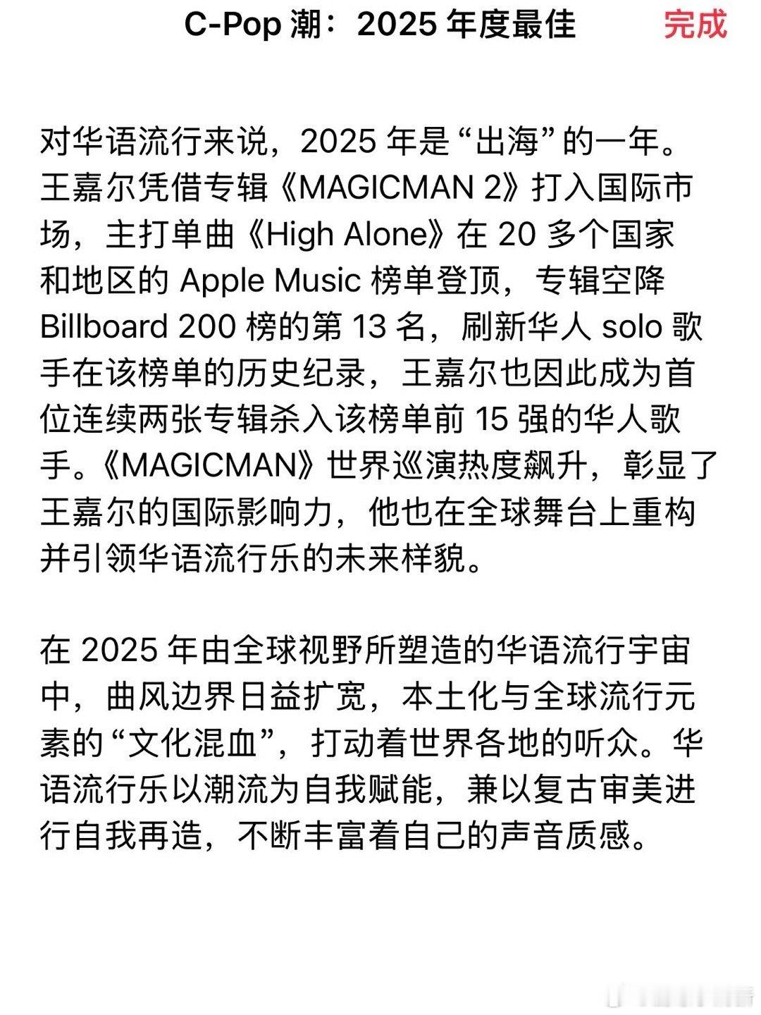 王嘉尔这个名字就是品质保证!荣获C-Pop年度最佳,新专辑《MAGICMAN2》强势登陆Billboard 200第13名,他用音乐构建的魔法世界,让全球乐迷为之倾倒!