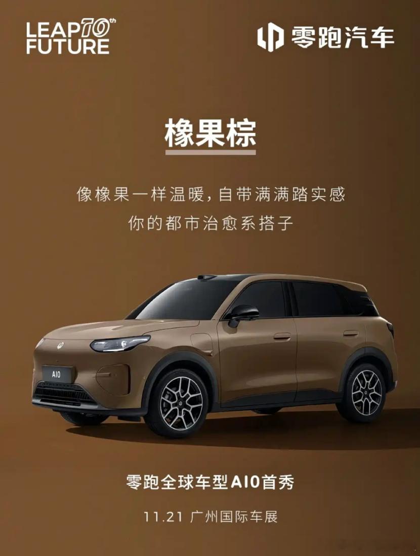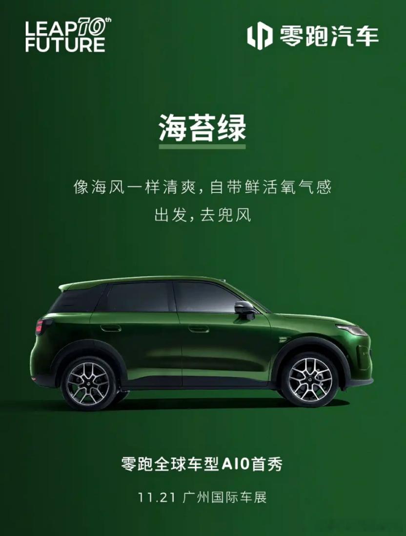 主要看价格!零跑A10官图来了。日前,零跑官方给出了A10的官图,这次官方给出了海苔绿、橡果棕两款配色。新车前脸采用了封闭式设计,车顶配有激光雷达,预计将搭载智能辅助驾驶系统。据悉,新车将在21号开幕的广州车展上正式亮相。对于消费者来说,对零跑产品的期待主要还是聚焦在价格,大家可以猜猜这款产品能卖多少钱?