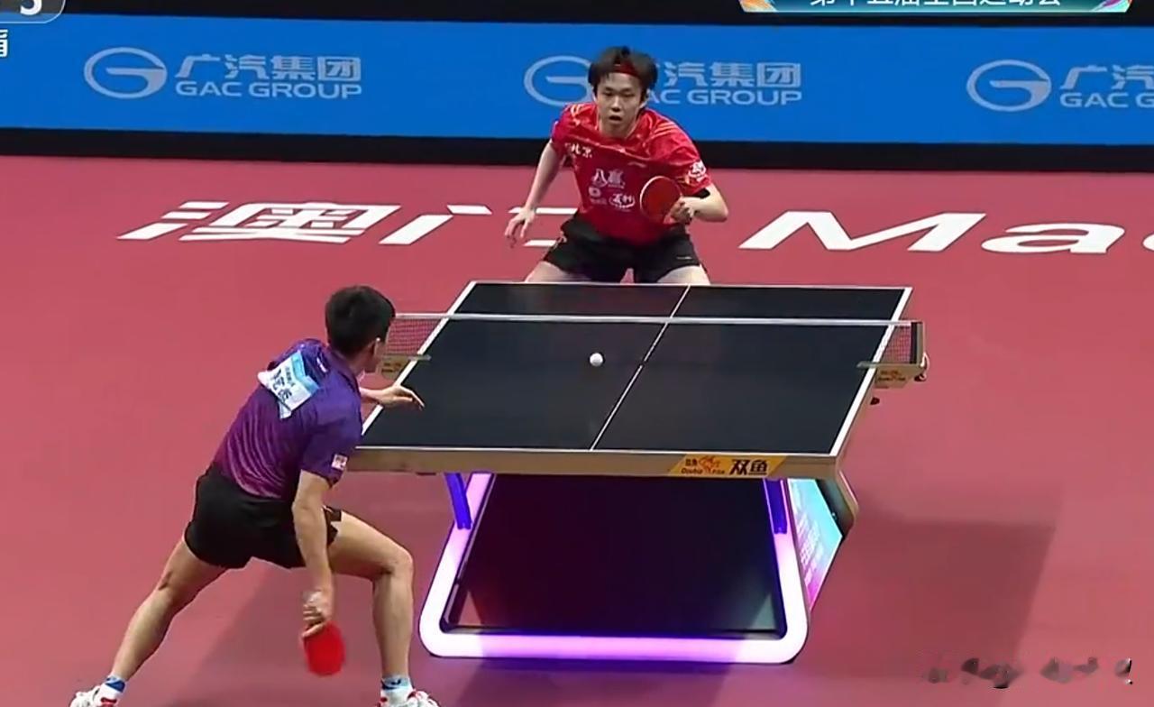 王楚钦要被爆冷? 这个教练太敢说了, 你要敢于和王楚钦硬碰硬。 本来以为在吹牛呢? 但是这个教练貌似也没说大话, 这个不知名小将还挺能打, 第一局后半局打的非常不错, 一路追到了8:9, 吓我一跳。 估计是大头对他不太熟悉, 熟悉了之后, 就应该好多了。 没想到第二局王艺杰7:4领先, 不敢看了。