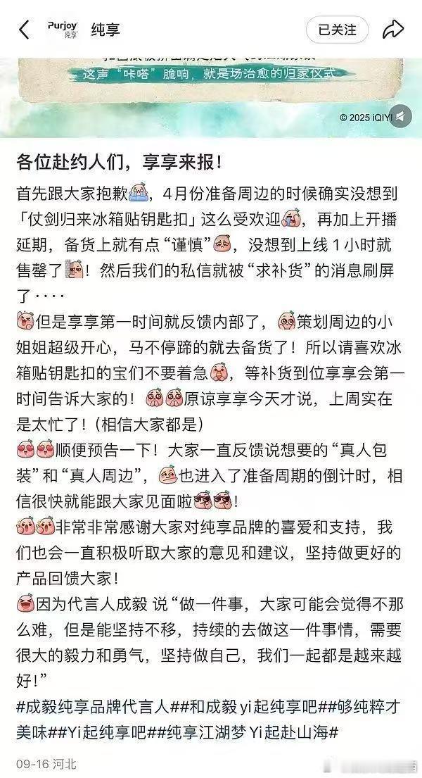 成毅粉丝太低调了,随便看看,这个氪金实力给我吓一跳,主要是持续不断懂吧,还能拿下各榜单第一成毅的《赴山海》联名总销售额(不算抽卡)高达54978218.63,盲盒直播间从来都是24小时之内售罄!🐮!角色站内热度爱奇艺包揽历史第一第二,腾讯站内25年第一!🐮*2!不仅连续两部剧云包场82.6万场共计2478万,在剧播期间官宣的商务更是全平台售罄🐮*3!