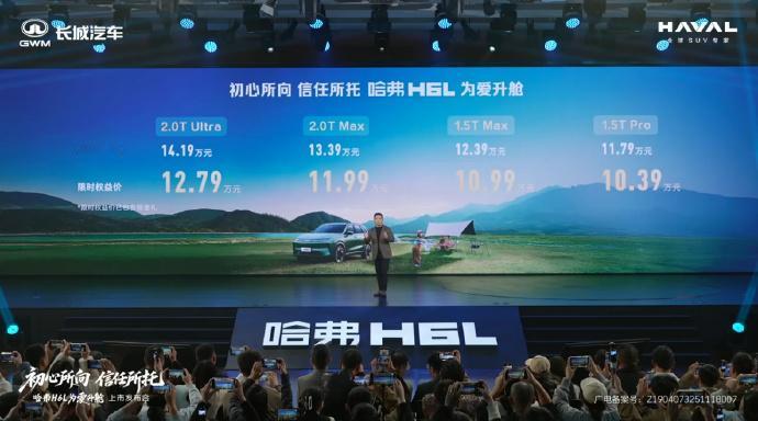 10.39-12.79万的哈弗H6L还能再次雄起吗? 从车型加长、轴距加长来说,这一代H6L直接就对标星越L了。而且2.0T+9DCT之后,油耗大幅度下降,性价比也提升了不少。你们觉得H6L还能卖上2万台/月吗?教授觉得,要是再能下1万块的话,那就很对目前市场的口味了。 基础参数:4800*1895*1730mm,轴距2810mm 发动机:1.5T/2.0T 发动机功率:135/175kW 汽油标号:92号 变速箱:7DCT/9DCT 悬架:前麦弗逊后多连杆 轮胎尺寸:18/19寸 屏幕:14.6中控屏+12.3液晶仪表+HUD 外观颜色:黑/青/白/灰 内饰颜色:黑/黑+棕/棕+米 座舱系统:Coffee OS 3 其他功能:胎压显示、360影像+透明底盘、车顶行李架、无钥匙启动+进入+远程、手机互联、语音助手 10.39万 1.5T Pro 后驻车雷达/定速巡航/6喇叭/18寸轮毂 前后LED灯/全景天窗/皮座椅/前排加热/车顶行李架 无钥匙启动+进入+远程控制/折叠后视镜+加热 10.99万 1.5T Max 前驻车雷达/单目摄像头/L2+ACC/电后备箱/9喇叭/64色氛围灯/自动刹车辅助 自适应远近光/侧窗隔音玻璃/前排加热通风/前碰撞预警/19寸轮毂/蓝牙钥匙 前门+前窗隔音玻璃 11.99万 2.0T Max 2.0T+9DCT 12.79万 2.0T Ultra 倒车预警/并线辅助/泊车辅助/HUD 方向盘加热/HUD/前排加热通风按摩+二排加热 主驾腰部支撑/独立功放【来自懂车帝车友圈】