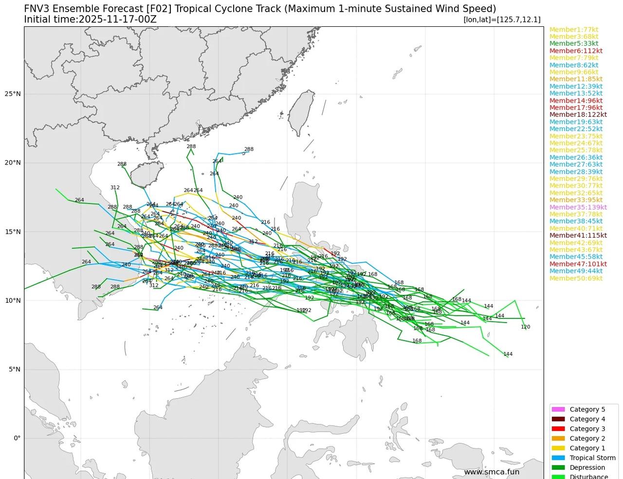 台风天琴酝酿中,预计下周生成并影响我国 根据监测预报分析,未来对菲律宾以东洋面热带系统生成信号强烈。根据AI歌谷模型fnv3,来看信号强烈,未来路径大致趋向明朗,进入我国南海中南部海域,之后趋向越南中南部。预计台风天琴在25日前后生成,先登陆穿过菲律宾中南部,进入我国南海,28日前后在越南中南部一带登陆。强度方面未来最强强热带风暴级或台风级。27~28日对我国西沙群岛,南海中南部,海南岛有明显风雨天气。天气 台风