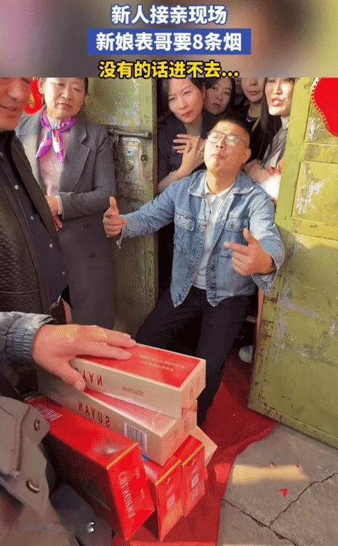 看到一视频,新人接亲现场,突然,新娘表哥要8条烟,没有不让进。从视频中可以看到,一男子守在门口,而他坐在那,两个手在比手势,看手势应该是表示多少。 另外在男子的对面有人手里抱着好几条烟。 然后先递给了男子六条,男子则继续拦着,显然烟是不够的,于是又有人拿了两条烟给他,他便抱着烟起身进屋里去了,还让屋里的人让让,然后接亲人跟着进去。 这一幕引发了网友们的议论。 有网友说: 我表妹结婚,是我带着堵门的,只允许要一根烟。后来对方自己过意不去,硬是一人塞了一包,现在表妹夫每次来,都要点名找我喝酒。 也有网友说: 谁也别想要我老公的8条烟,那是我的钱,以为我傻呀。 也有网友说: 人家是闹着玩,凑个热闹,香烟未必是自己要的,可能还是会留给主家。 还有网友说: 如果是亲哥亲弟。要8条烟其实的也还好,像用这种表的。稍稍有点过分,其实两三条的话就已经很不错了。 还有网友说: 我结婚的时候也这样,老丈人在旁边看了没一会,大吼一声,行了,差不多可以了,赶紧让开门。 男子比这个手势是要八条,而前面给了他六条,而且两种烟各三条,其中有一种烟是中华。 后面又给拿了两条,也是中华,等于中华烟有五条。 这八条烟也就是八十包,平均一个人大概分到两包,这八条烟大概有3000块钱左右。 能分四十个人,平均每人八十块钱,而这新娘表哥可能不是自己一个人要这么多烟,他一个人守在门口,而屋里还有一堆人站在那,很明显他只是个娘家代表。 男方这边给他8条烟,这8烟,他可能要拿去分了,分下去的话,一人也就两包烟。 如果只是他一个要八条烟,那就真的过分了,他这么做的话,那这亲戚以后就没得做了。 当然还有一种可能,就是他把这八条烟收了后,然后给新娘家。其实在这种情况下,图个热闹沾个喜气,不过分,而且接亲肯定是要给娘家人准备点红包和烟啊。 (来源: 云视档案放映室)