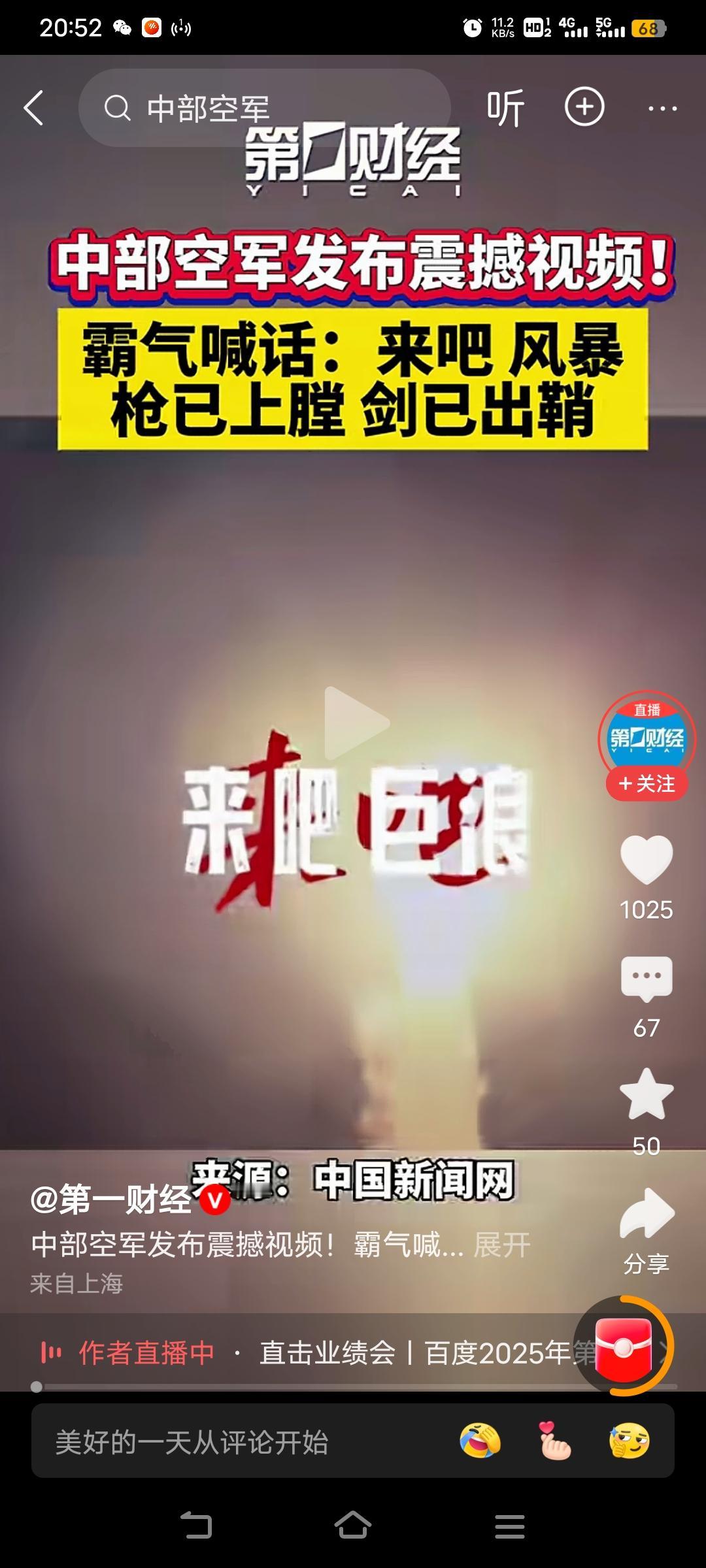 中部空军发布作品“来吧,枪已上膛剑已出鞘,我们时刻准备打胜仗!”我上头了!