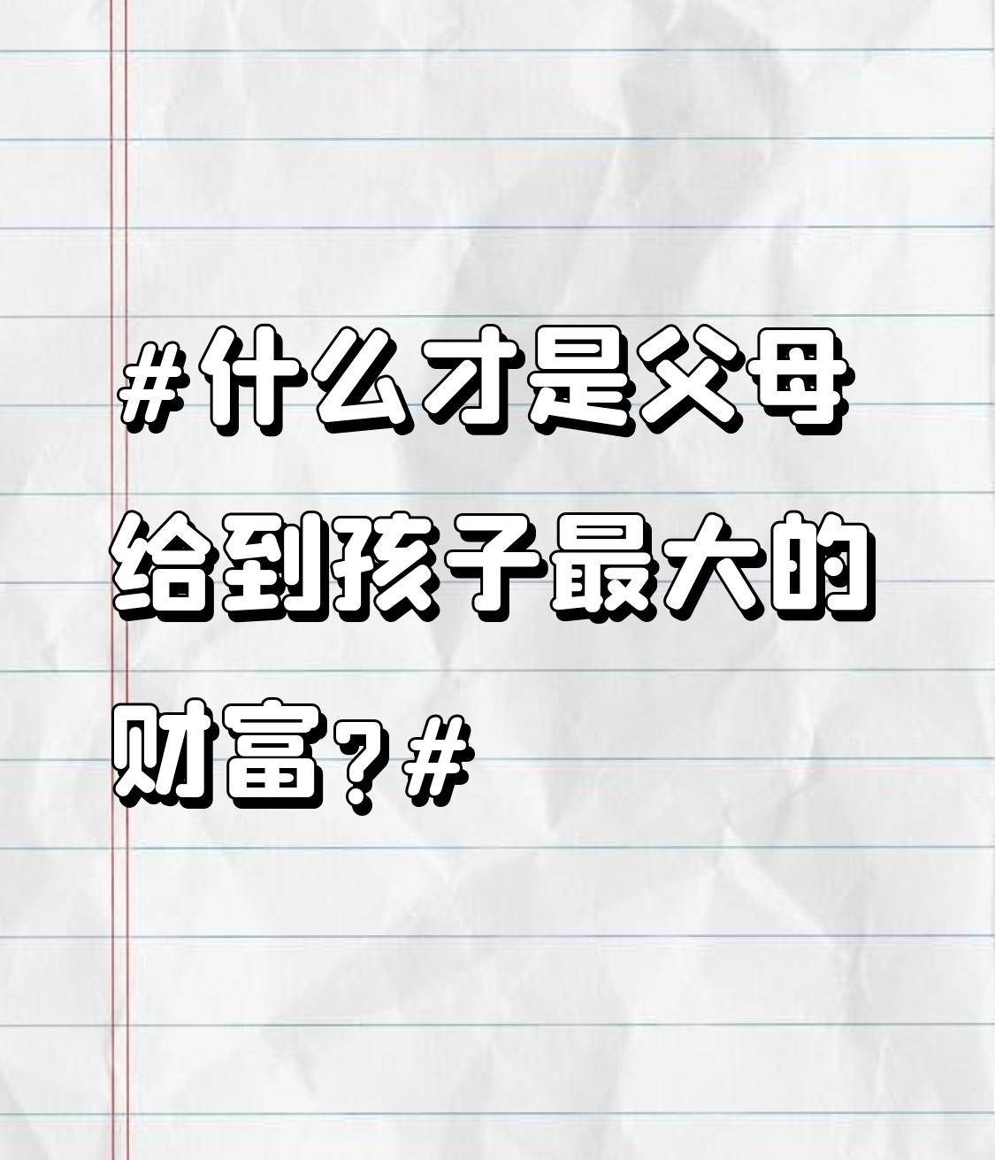 什么才是父母给到孩子最大的财富? 父母给孩子最大的财富,一直是个热议话题。很多父母拼命攒钱买房,想让孩子衣食无忧,可不少孩子却不珍惜,没了进取之心。 我觉得财富不只是真金白银。掌握基本生活技能很关键,现在很多父母事事包办,孩子自制力差、没责任感,进入社会没担当。独立能力是成长基石,让孩子自己动手做事,能让他们未来更自信从容。 同时,开放思想也不可或缺。有开放思想,孩子才能在未来找到自己的路。只给真金白银却没有独立能力和开放思想,孩子也难有长远发展。