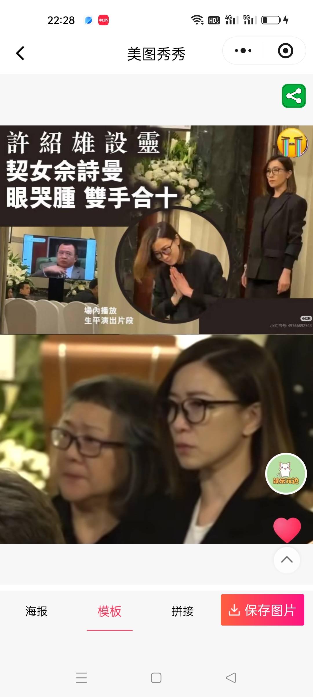 佘诗曼送别许绍雄追悼会,有个小细节大家注意没? 佘诗曼看见媒体下意识的打招呼的表情管理!苦涩的笑着! 要知道,这已经是佘诗曼这是第二次送别父亲了!许绍雄正式认亲的干女儿,别人的花篮都是许绍雄先生千古,只有她是老豆千古,还是放在亲女儿旁边的! 佘诗曼一直陪在干妈身边,而且手还是握在一起。 已经三天三夜没睡觉,帮忙处理后事,连他女儿都说感谢她帮忙,有情有义,一直陪在干妈身边! 许绍雄演技 佘诗曼 许绍雄追悼会众星送花圈