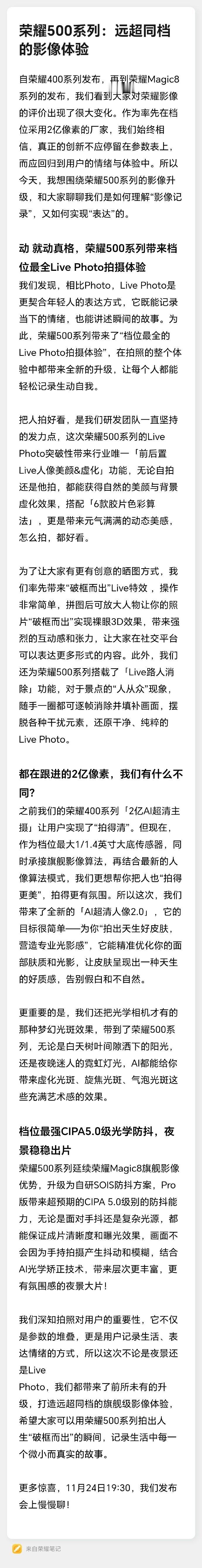 荣耀500系列搭载CIPA 5.0防抖,边走边拍视频稳如鸡头!跑步跟拍不晃、车上抓拍不虚,就连长焦端都稳得一批。这下真·全民摄影师时代来了,手抖党终于有救了!
