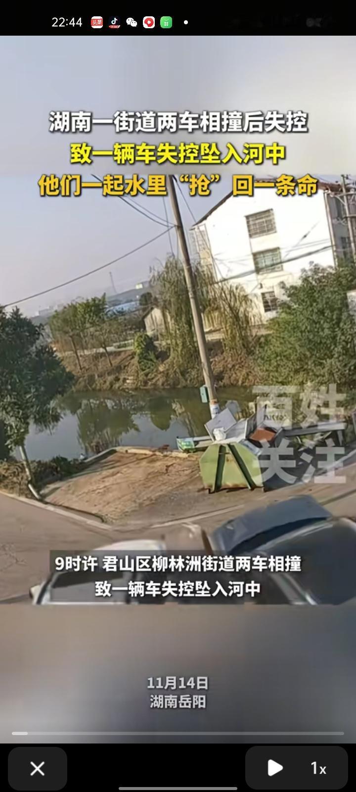 11月14日,岳阳市君山区一十字路口发生一起交通事故,致一辆车失控坠入河中。坠河车辆驾驶员顺着车窗爬上车顶自救,附近居民见状也扛着竹竿赶来救人,正在巡逻的民辅警发现情况后立即展开救援。 为营救落水者,辅警郭杰跳进冰冷的河水中,用身体托举驾驶员奋力游向岸边。驾驶员被救上岸后,向施以营救的群众和民警连连道谢。他们没有惊天动地的誓言,却在危险时刻挺身而出。民辅警的职业坚守、群众的守望相助,交织成最动人的画面,这份勇敢与善良值得被所有人点赞和学习。