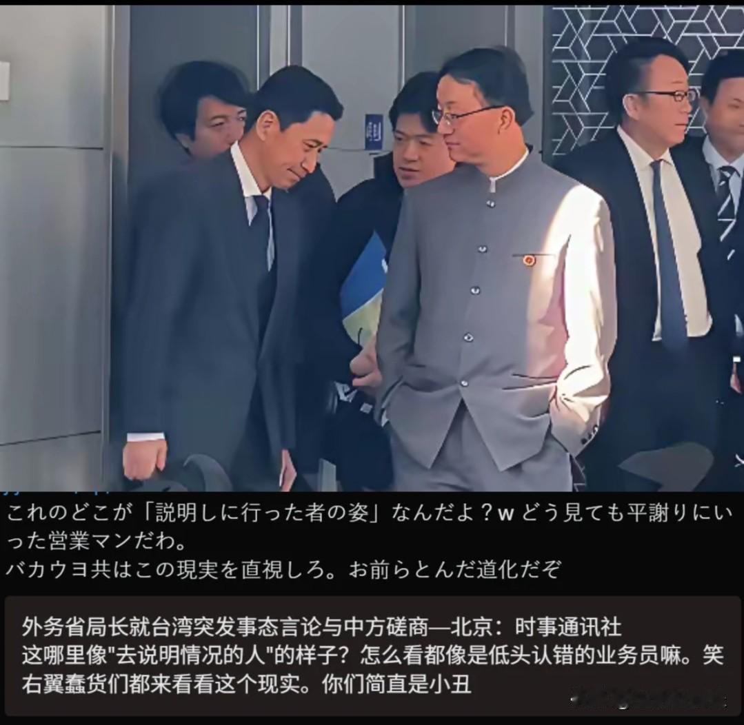这几张图传到脚盆,有脚盆网友崩溃:这哪像去说明情况的样子,这怎么看都像是低头认错的业务员嘛。 这几张图生动注释了,外交官传递态度,不仅靠言辞,有时通过举手投足、一举一动,一个姿势便能胜过千言万语。 不过,我们也不要被脚盆那种表面点头哈腰,卑躬屈膝的样子迷惑。