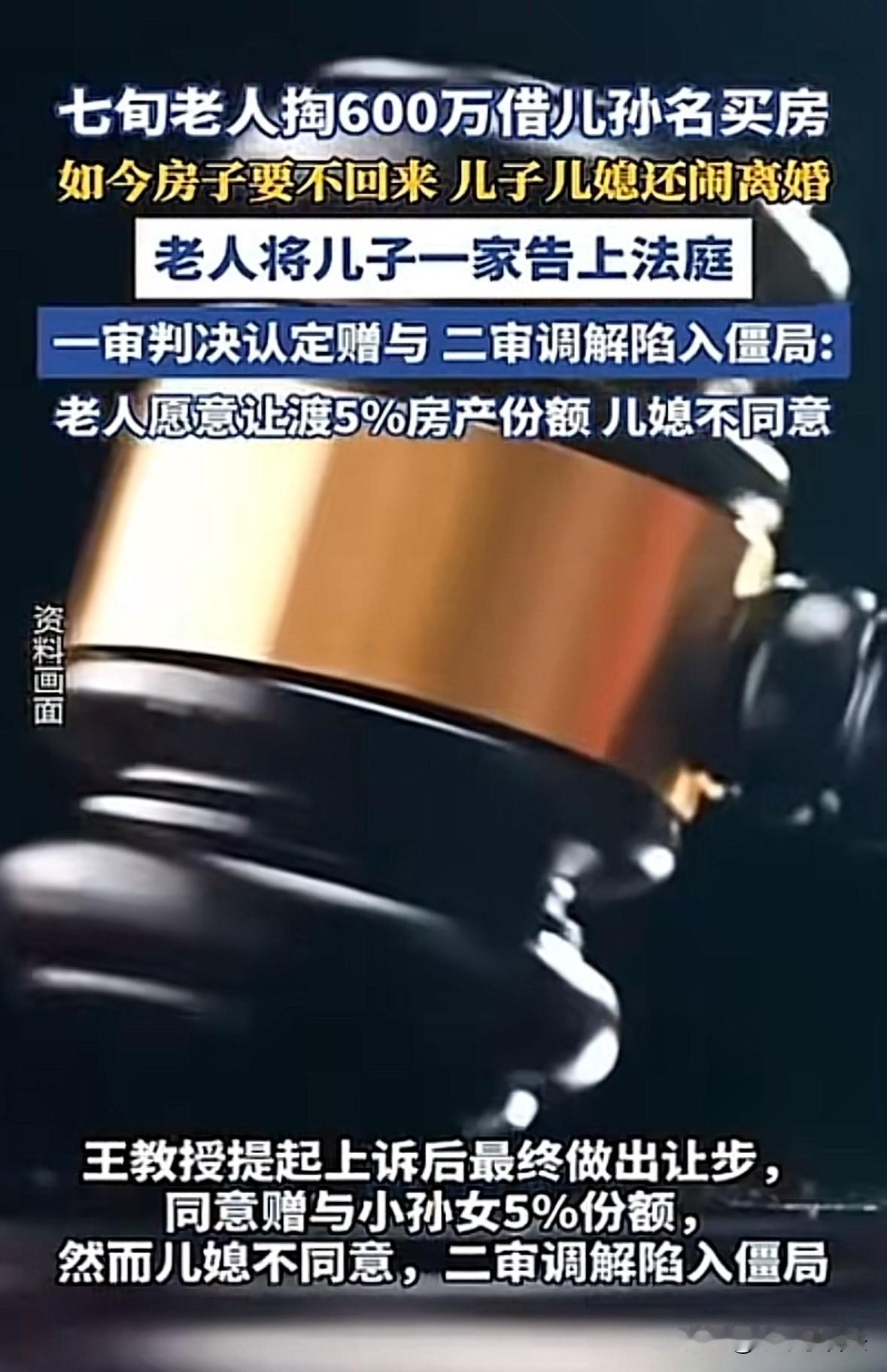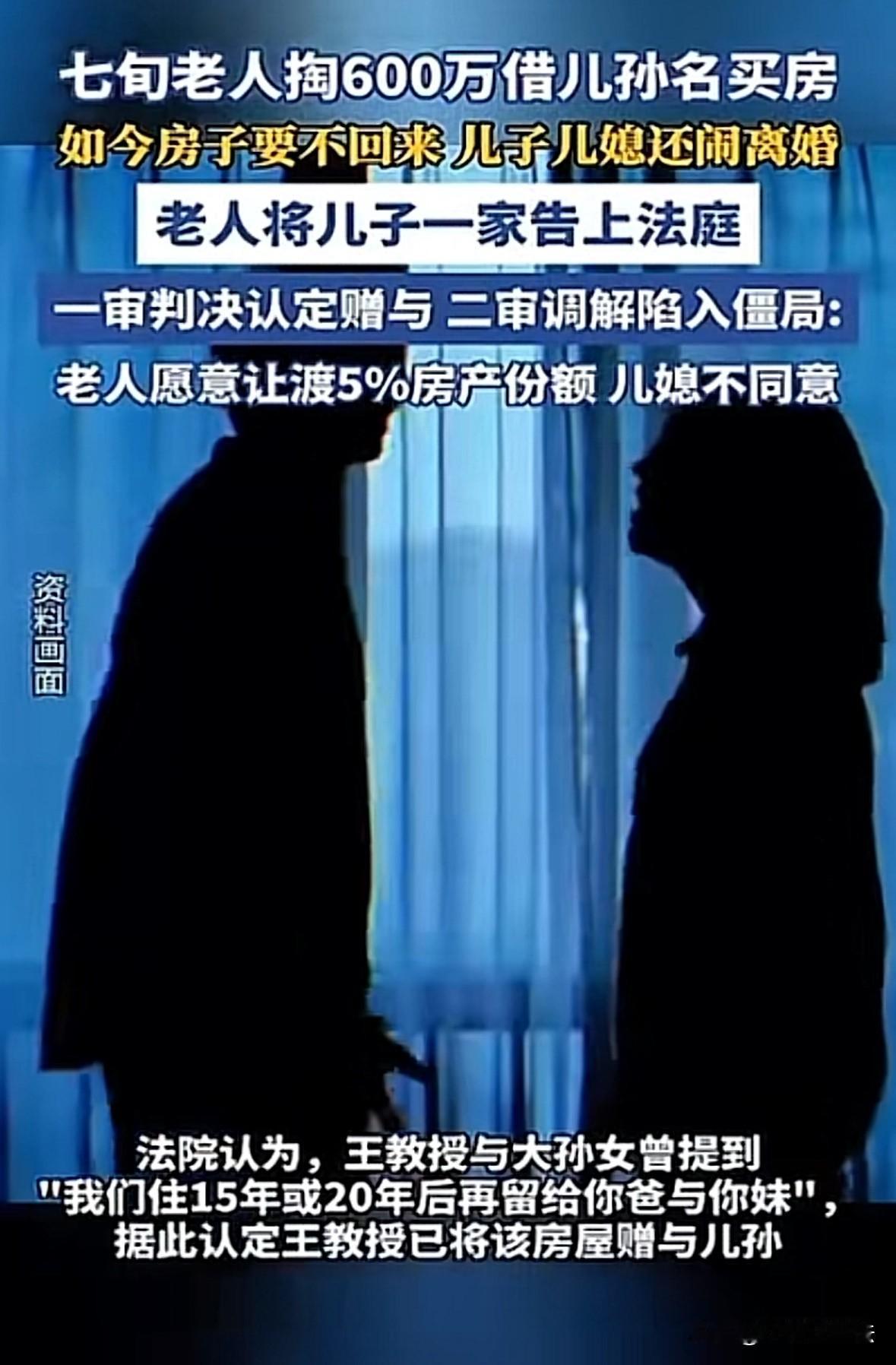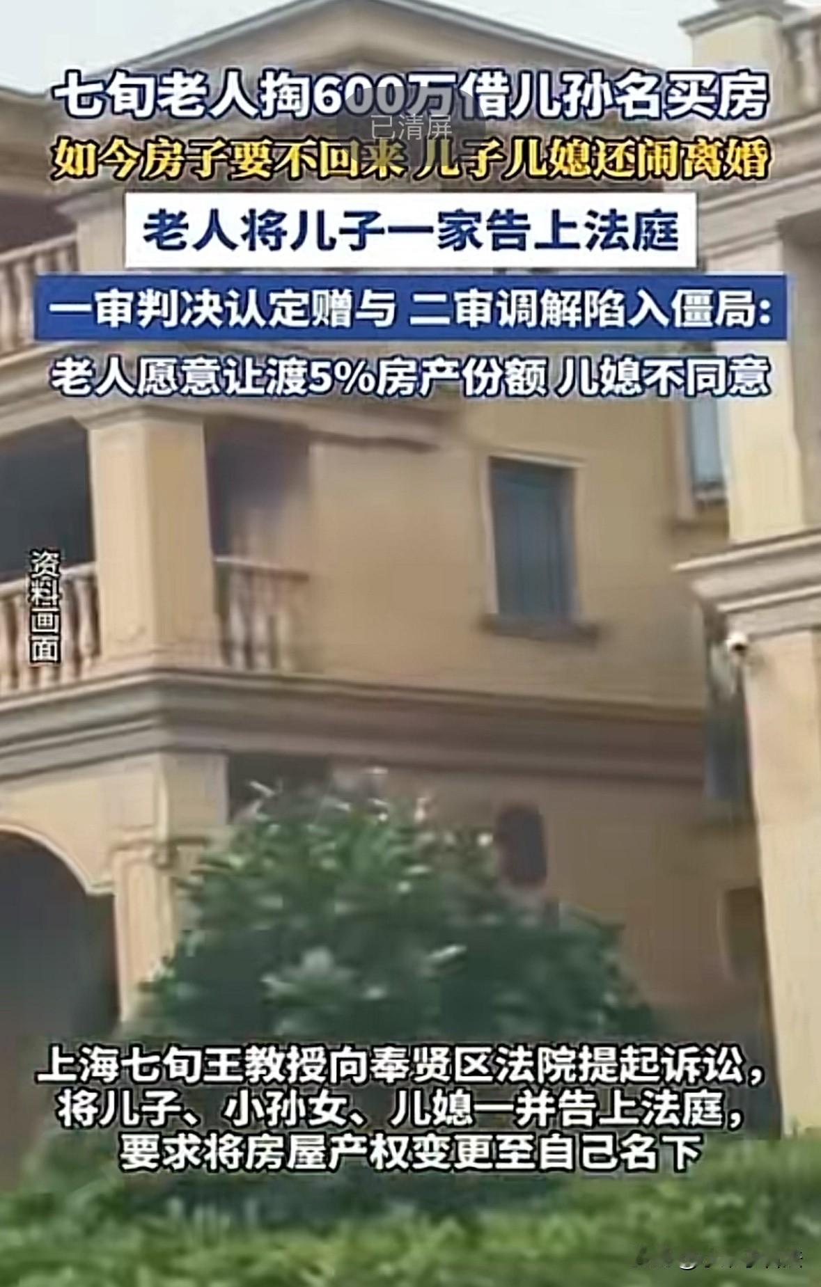 上海,老教授夫妻俩退休后跟儿子儿媳无法共同生活,想买房单过却无购房资格。想借儿子名字买房,但要把孙女名字加上,老教授夫妻俩后,双方到公证处签署借名买房协议。花600万购置别墅后,老教授夫妻俩赶紧卖掉2套房产,想要在办理新房房证前把产权更回来,儿媳却拒绝代替孙女签字。老教授夫妻无奈俩把儿子儿媳和小孙女告上法庭,要求产权变更回来。岂料法院判决后,老教授夫妻俩以及儿子儿媳分别办理离婚。 70岁的王教授退休前是三甲医院的护理部主任,退休后和老伴就与儿子儿媳住在一起,安享晚年,享受天伦之乐。 本来计划的很完美,但事实却事与愿违。儿子儿媳经常发生争吵,起初王教授夫妻俩还劝劝,后来也劝不动了,也不想劝了,就想着能安安静静过日子就行。 于是王教授和老伴商量,搬出去单过。考虑到租房不合适,也想要晚年的日子不再过得紧紧巴巴的,想要在郊区换个别墅住,空气和环境会好不少。 但是王教授早些年就购置了3套房产,要是再想买房就只能借其他人的名义购置。 恰巧王教授相中了一套别墅,性价比不错,虽然得掏600万购置,但他觉得很值得,于是就找到儿子商议借名买房的事。 儿子自然是同意的,但却提出了一个要求,就是要在房本上加上女儿的名字,也就是王教授小孙女的名字。按照儿子的说法,是为了哄老婆开心。 王教授深知儿子和儿媳的状况,反正是为了哄儿媳妇开心,就答应了下来。 从2023年准备买房,到2025年彻底搬入新家,王教授和老伴两个人费尽心力,期间还和儿子到公证处签署了借名买房的协议,以便日后有个证据。 别墅也住上了,王教授和老伴就打算卖掉2套房子,这样就可以恢复购房资格,正好别墅的房产证还没有办,就可以和儿子把产权变更回来。 儿子同意签字,但是因为房产证上有小孙女的名字,作为监护人的儿媳妇也需要签字才可以进行产权变更。 就在这时儿媳妇不同意了,拒绝签字。 王教授千算万算,就是没想到儿媳妇会在关键时刻掉链子。明明手里攥着借名买房的协议书,但儿媳妇就是不认可,就是不签字,王教授也没有办法。 一辈子辛辛苦苦攒下来的钱,不能被外人觊觎财产,于是一气之下就将儿子儿媳以及小孙女一起告上法庭,要求其配合办理更名过户手续。 根据《民法典》第134条的规定:具备下列条件的民事法律行为有效: (一)行为人具有相应的民事行为能力; (二)意思表示真实; (三)不违反法律、行政法规的强制性规定,不违背公序良俗。 王教授手里握有儿子签署的借名买房的协议,协议书上已经明确表明,购房时的购买人写上儿子和小孙女的名字,是为了借名购置房产。 预定好在可以变更房产的时候,儿子和小孙女应配合王教授夫妻俩进行产权变更。 但是儿媳妇却迟迟不肯签字,违背了借名买房的协议内容,请求法院判决儿子儿媳以及小孙女将房子的产权变更回来。 儿媳妇抗辩,之所以不签字配合变更房产证明,是因为王教授曾答应将房产赠与给孙女。 王教授如今反悔要把房产要回去,是王教授有错在先,儿媳妇不签字是为了维护未成年人的权益不被侵占,并不存在过错。 根据《民法典》第658条的规定,赠与人在赠与财产的权利转移之前确实有权撤销赠与。经过公证的赠与合同或者依法不得撤销的具有救灾、扶贫、助残等公益、道德义务性质的赠与合同,不适用前款规定。 儿媳妇提供出王教授与孙女的聊天记录,以此证明王教授在购房时写上孙女的名字是一种赠与行为,产权已经发生转移,王教授无权进行变更, 法院审理后认为: 王教授和小孙女的聊天记录是这样说的:奉贤房屋我们住15年或20年以后再留给你爸与你妹妹。 根据王教授和孙女的聊天记录可以看出,王教授已经将房屋赠与给儿孙。 一审法院判决,王教授花600万购置的个人房产,自愿赠与给儿孙,且产权已经发生转移,无法申请撤销赠与。 法院判决一出,王教授老伴和自己闹离婚,因为一审时未追加老伴参与诉讼,王教授的老伴认为王教授要独吞房产。 儿子儿媳也因此起诉离婚,甚至连孙女都在法庭上指证王教授的老伴是在索要房产,让王教授和老伴十分寒心。 王教授不服判决,提起上诉。法院受理后,多次组织双方进行调解,毕竟都是家里人,能调解解决是最好的办法。 主审法官提出方案,房产由王教授和老伴以及小孙女各占一半,王教授和老伴不同意。 后来王教授提出方案,给小孙女5%的房产份额,承诺小孙女未来孝敬长辈,会留下可继承的财产,但是儿媳妇不同意。 本是王教授和儿子之间借名买房的事,就因为加了个名就变成了赠与,而且还有聊天记录作为证据佐证自愿赠与的事实依据。 只有王教授拿出更多的证据证明,加名并非是赠与,要不然很难会把房子拿回来。