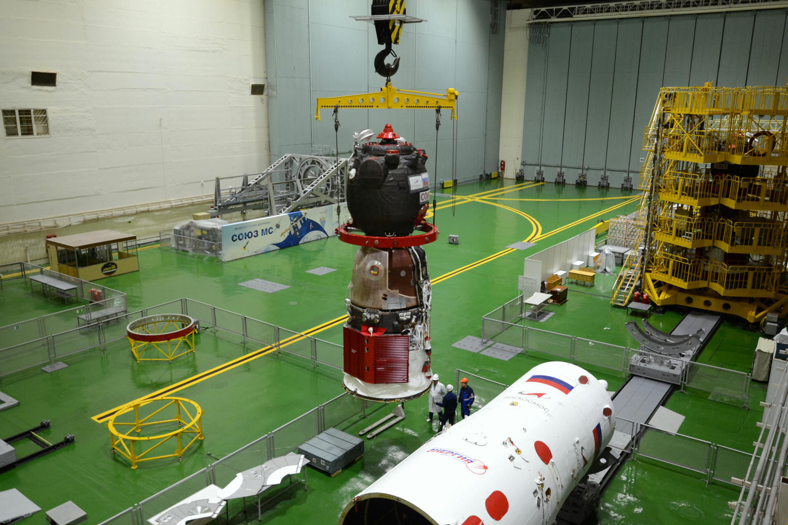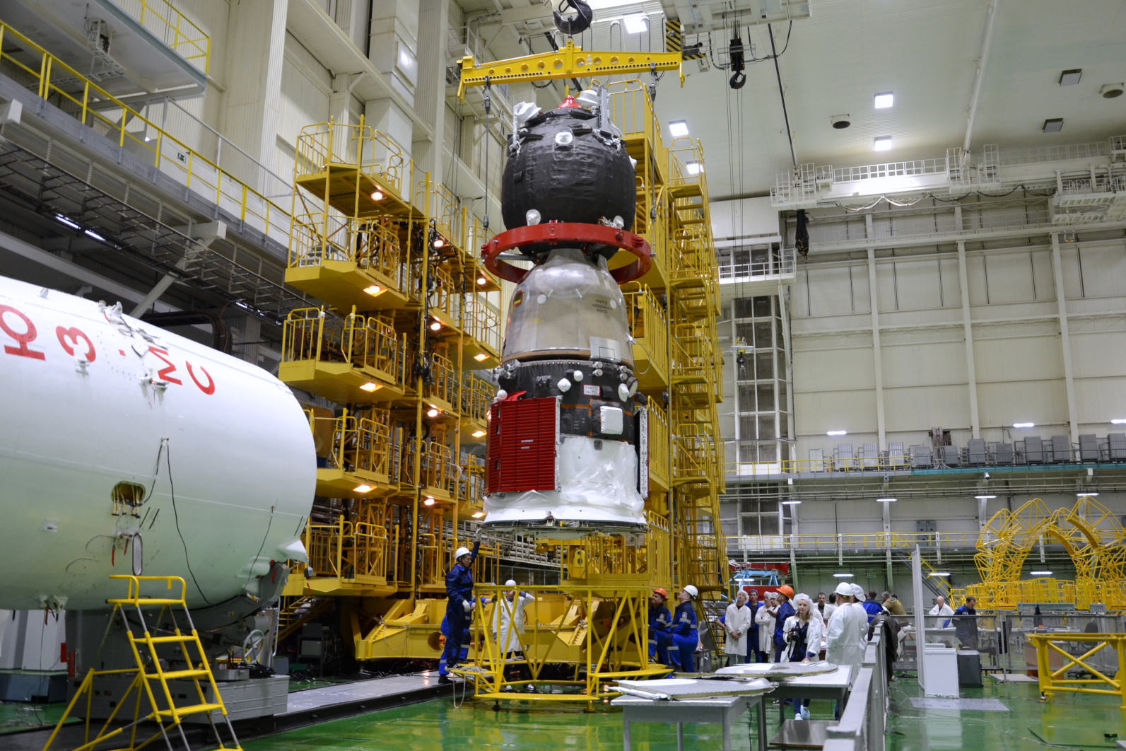 【联盟MS-28飞船在拜科努尔完成与适配器整合操作】2025年11月17日,拜科努尔航天发射场技术综合体,联盟MS-28载人飞船完成关键总装步骤。在254号装配测试厂房内,能源火箭航天集团与俄国家航天集团下属企业专家实施了飞船与适配器的对接整合作业。该适配器隶属联盟-2.1a运载火箭三级(俄标),是运载火箭头部整流罩的组成部分,承担飞船与整流罩之间的机械连接功能,并将联盟MS-28飞船的指令接口集成至火箭的箭载控制系统。对接前,操作人员按规定完成了部件的控重检验,同时推进了飞船上行货物的装载准备工作。联盟-2.1a运载火箭搭载联盟MS-28飞船的发射窗口定于2025年11月27日。