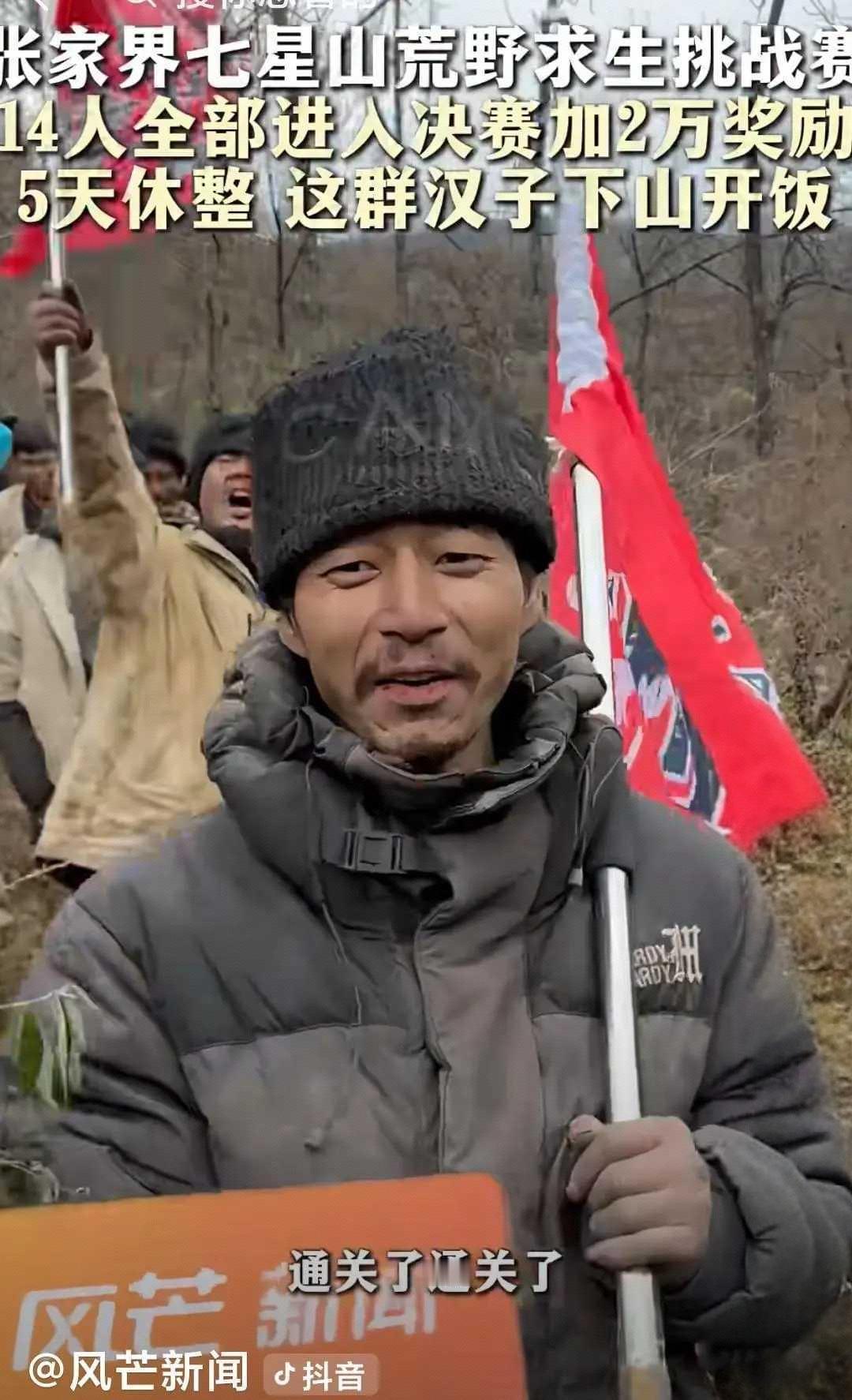 11月18日,张家界七星山荒野求生挑战赛上演戏剧性一幕:历经41天极限生存后,主