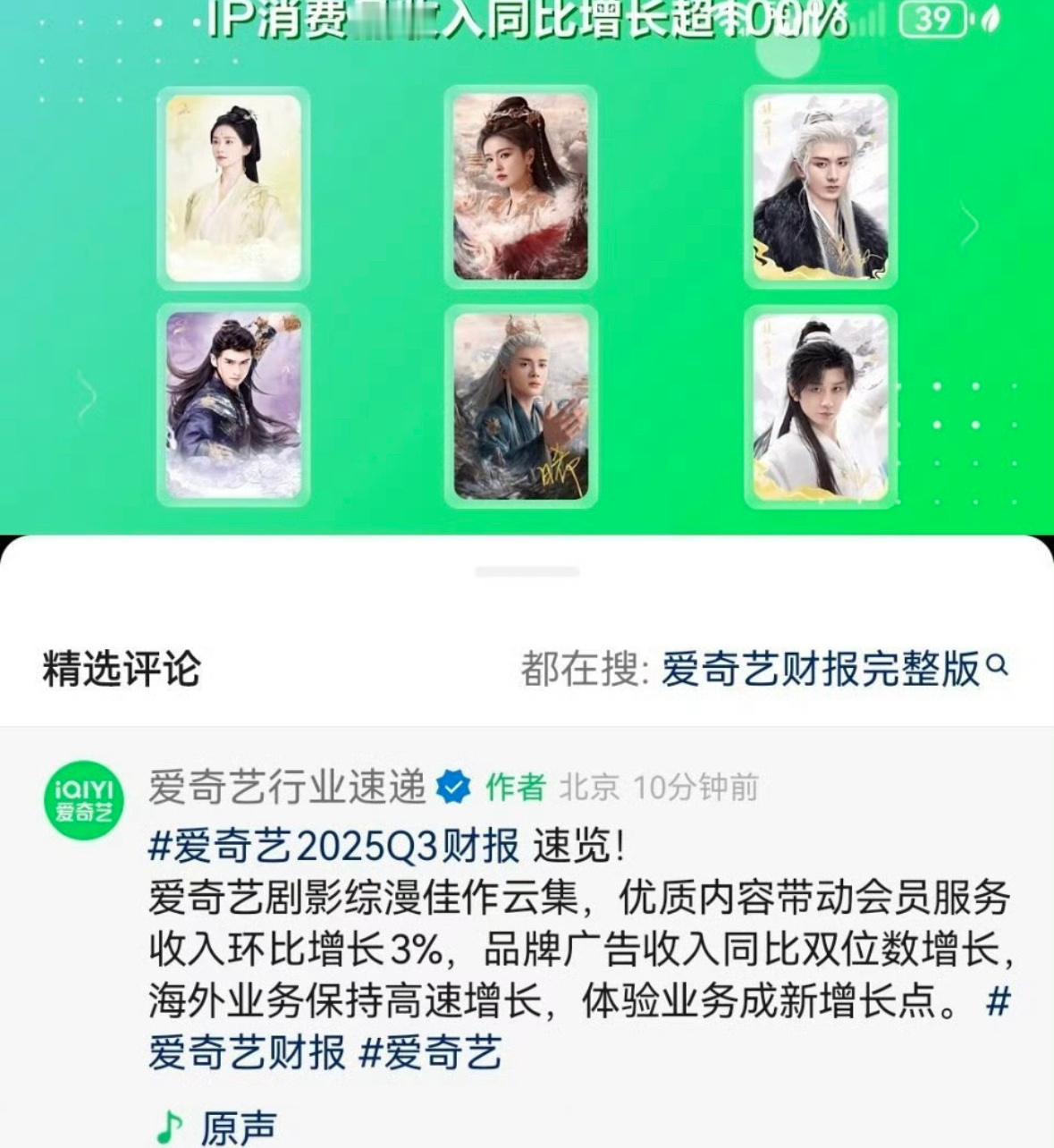 刘诗诗主演淮水竹亭登上了爱奇艺2025Q3财报