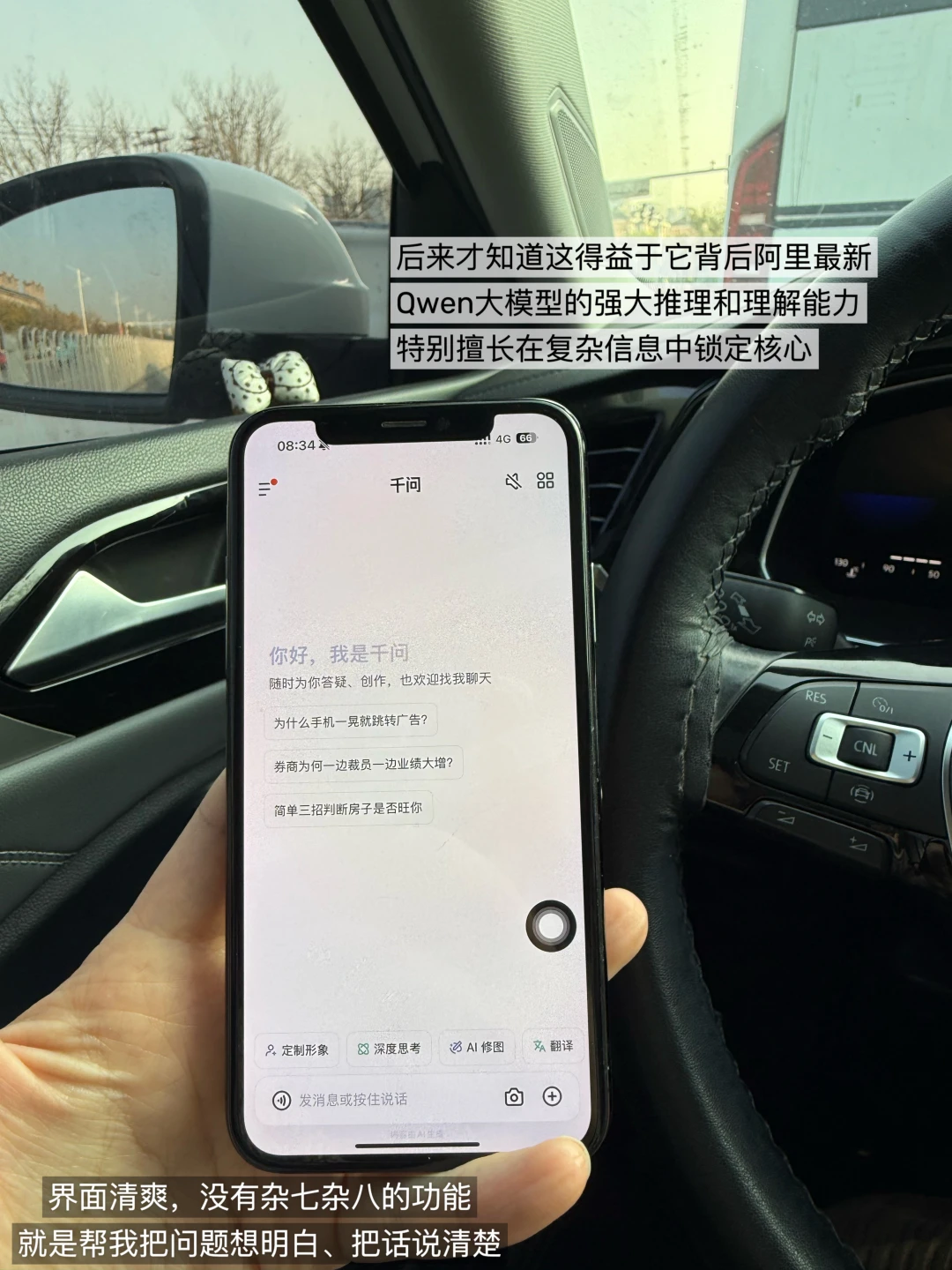 她说千问推理能力很强,回答也有深度,非常适合问需要专业度的问题。我试着把三页纸素材贴进去,请它提取,千问秒回且抓重点的能力让我服气