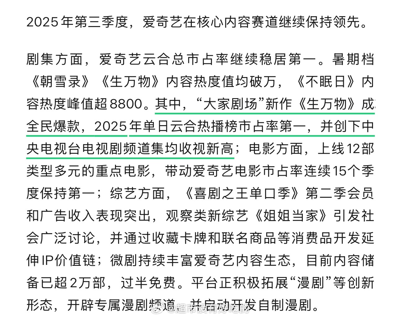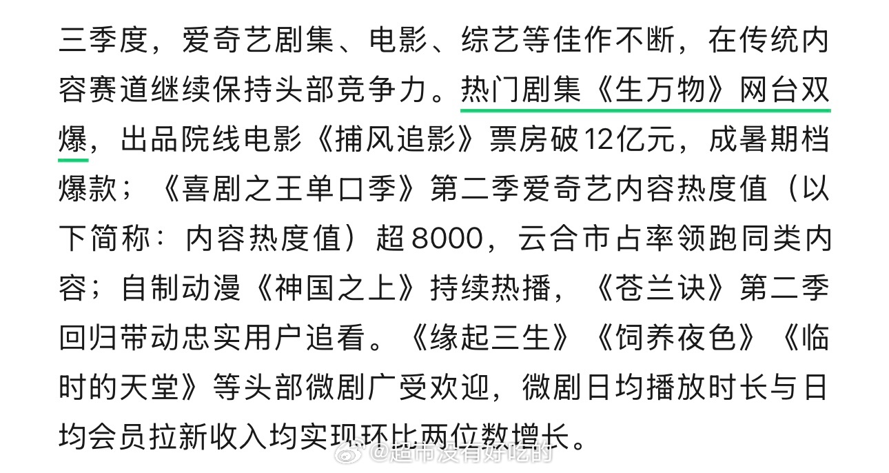 爱奇艺Q3成绩出来了认证了杨幂生万物为台网双爆、全民爆款🔥