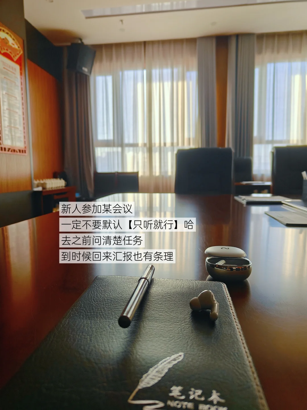 她参加某会议,没问就默认【只听就行】。领导要【纪要】时发现【记录】都没有。