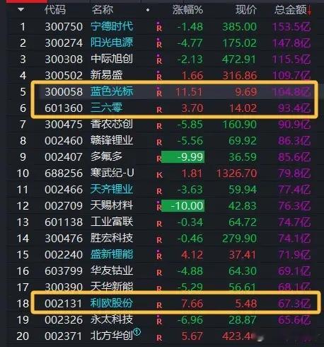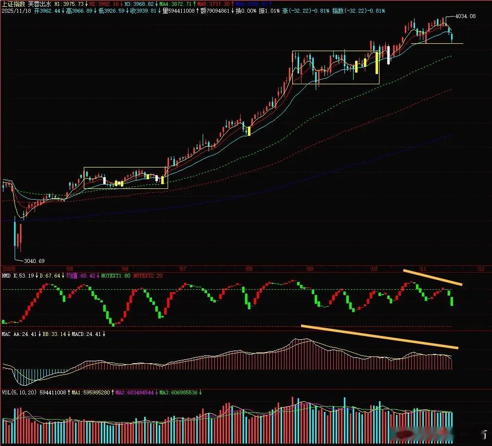 盘后,AI应用利好来袭!大盘今日低开低走,跌破了EMA20均线,逼近小颈线位3922点。目前诺曼底指标出现小顶背离,MACD出现大顶背离,颈线位一旦跌破收不回来,阶段顶就成立了,第5小浪确认完结。要想解除这个风险,明天大盘得阳包阴。盘面上,今日绝大部分股票下跌,只有AI应用相对比较强势,蓝色光标、值得买、视觉中国、浪潮软件、榕基软件等涨幅居前。尤其是蓝色光标、三六零的成交额涨到了百亿元附近,进入了A股成交榜的前十强。这是个强势信号,每个板块成长为主线时,板块里吸引力最大的个股的成交额,都会进入前十名。国庆节以来,资金多次往AI应用方向切,都切换失败了。就在市场失望时,这次在巴菲特、谷歌、阿里巴巴的助攻下,它们又悄然走出了主线潜质。它能取代新能源的主线地位吗?值得关注。锂矿股今日领跌两市,六氟磷酸锂经过两个多月的爆炒,今天在总龙头天际股份的跌停中正式退潮。多氟多、天赐材料、石大胜华、华盛锂电、新宙邦、万润新能等跌停或跌超10%。消息面上,传闻阳光电源与宁德时代在储能上打起了价格战,阳光电源降价30%,报价跌破1.2元/Wh,宁德时代反击至1.15元/Wh。盘后,这个传闻被辟谣了,目前各家官网储能价格也还维持原价,并没有内卷。六氟磷酸锂的炒作今天退潮了,它们想要直接复活,难度很大,反倒是受到拖累不严重的锂矿股值得关注,尤其是走出了上涨趋势的个股,每一次回调都是加仓机会。盘后消息面:1、华为官宣!对标英伟达的AI突破性技术将于11月21日在上海揭晓,正式发布并开源创新AI容器技术Flex:ai,助力算力资源的利用效率。2、宁德时代:当前储能电芯市场需求旺盛,产能利用率饱满;2027年有望实现全固态电池小批量生产。3、百度Q3财报:首次披露AI业务收入,增速50%超预期。其中,AI云收入同比增长33%,AI应用收入达26亿元,AI原生营销服务收入同比增长262%,达28亿元。这对AI应用是个利好,意味着国产AI应用正在加速“变现”,从概念进入业绩兑现阶段。4、谷歌:新一代AI大模型Gemini 3.0有望在本周登场。据称,该大模型可5秒生成新粗野主义风格网页,一句话搭建动态Windows系统,甚至模拟macOS界面,还能从零创作SVG动画、生成行星3D模拟,甚至辨识手帐本涂鸦。5、上线仅一天,阿里千问App已冲入App Store免费应用总榜前四,排名超越DeepSeek。另外,夸克全面接入千问对话助手,将发布全新AI浏览器,与千问APP形成战略协同。