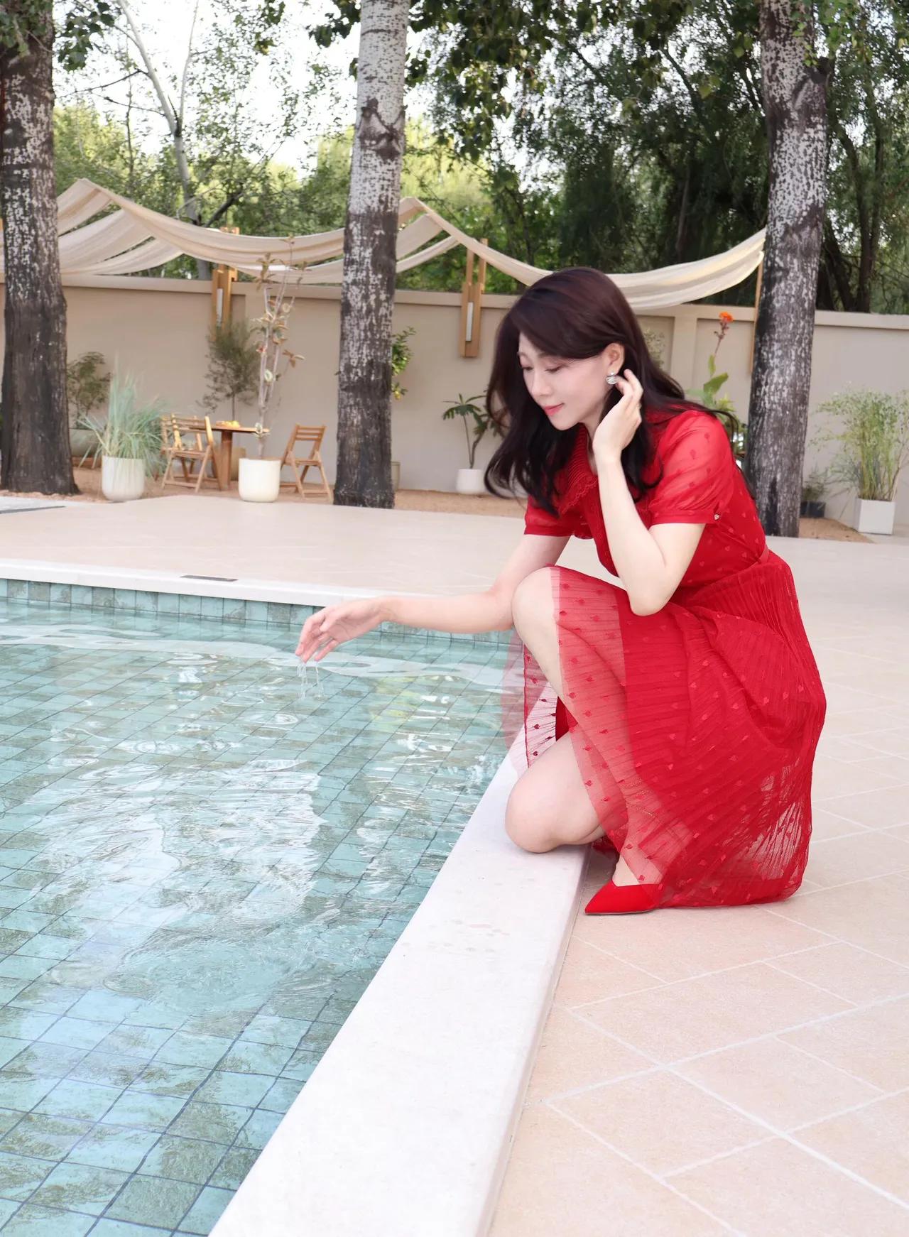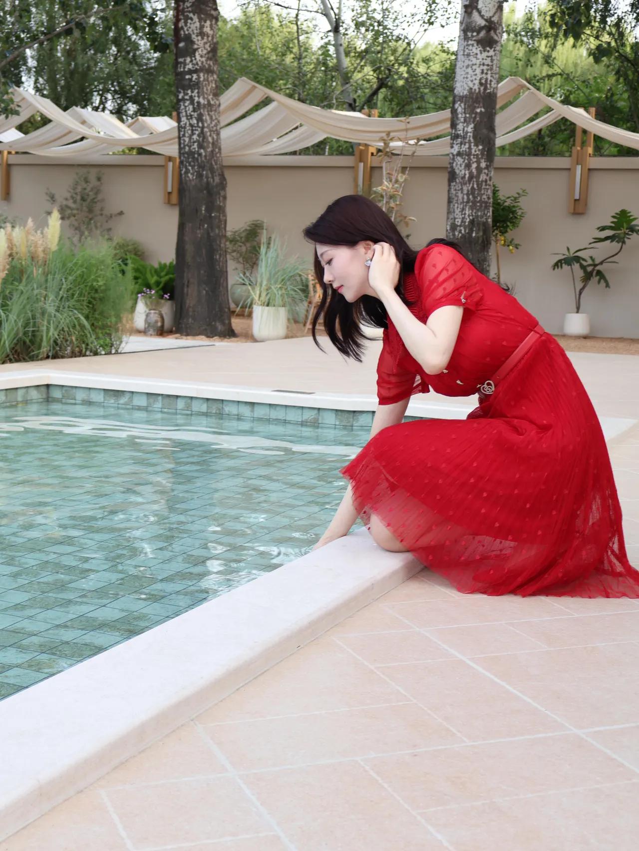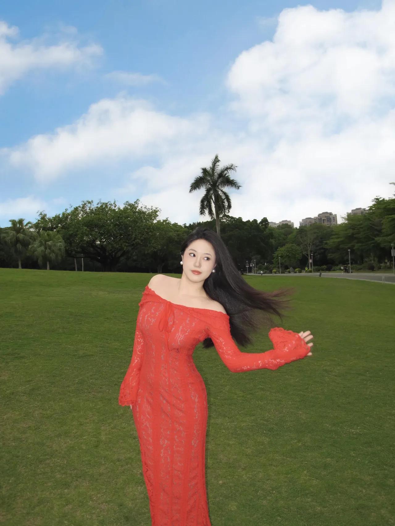 世界是一抹红 也许,夏天真的成为回忆了。 风裹挟着花香掠过,将季节的情绪,凝练成永不褪色的视觉诗行。 飞檐曲水,旗袍玫瑰,斑驳树影,把盛夏的余温永远定格。 红裙曳地,似撷来天边那抹最炽烈的霞。 裙摆让红浪翻涌,花瓣如蝶群飞舞,在蓝天下划出灵动弧线。 那玫瑰不是装饰,是活的思绪,在古典里绽出当代的锋芒。 当纯色丝绸裹住身躯,玫瑰的红便在光影里洇开,似要在时光的宣纸上,作一幅关于“雅”的长卷。 红裙似火,那是一场视觉盛宴,每一眼都是对感官的极致取悦。 蓝天澄澈如洗,红色花海肆意绚烂,红与蓝碰撞出炽热张力,将妩媚与雅致揉成独特的风景。 裙摆的波点、发丝的卷度、花瓣的轨迹,每个细节都透着鲜活的浪漫,将夏日揉成一幅流动的画。 每一次抬眸、每一回转身,都在传统与时尚的边界,书写着关于美的诗意篇章, 让古典的灵韵在当代的语境里,绽放出愈发迷人的光彩。 这般盛景,是自然与诗意的绝美共振,叫人一眼沉沦,坠入灵魂的欢喜地。