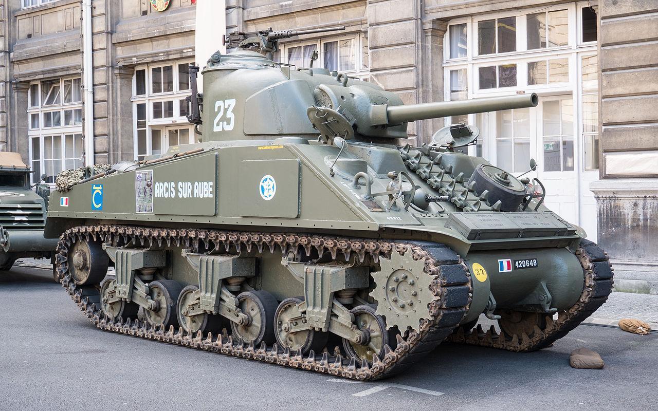 “你敢包庇法奸?!跟我走一趟!”——1945年4月12日,德国,巴登-巴登市。“自由法国”第1装甲师第5非洲猎兵团的罗贝尔·迪梅尼上尉在审讯“布伦纳”酒店经理,该酒店曾为法国通敌者据点。背景可见美制M4“谢尔曼”坦克。 巴登-巴登当日被法军第5非洲猎兵团通过山地迂回战术攻占,此行动成功绕过德军在拉施塔特设置的防线,使该城免遭战火破坏。 为什么法奸会把德国的一个酒店当作据点?查了查资料,巴登-巴登是一个旅游城市,以温泉著称。1862年,法国人就在此设立赌场、戏院、歌剧院,法国赛马俱乐部也在此成立赛马场,此后该城就成为了全欧洲休闲之都。由于法国资本太多、太复杂,所以二战时一些法奸就利用种种关系就盘踞、躲藏在此。 拉施塔特防线是德军在西壁防线南段设置的支撑点,部署有掷弹兵师以及大量88毫米炮。 M4“谢尔曼”坦克(参见图2)是美国于1941年定型的一款中型坦克,初期型战斗全重30.3吨,装备一门75毫米口径火炮和3挺机枪,配备350马力汽油发动机。改进型号繁多,总产量达4.9万辆。