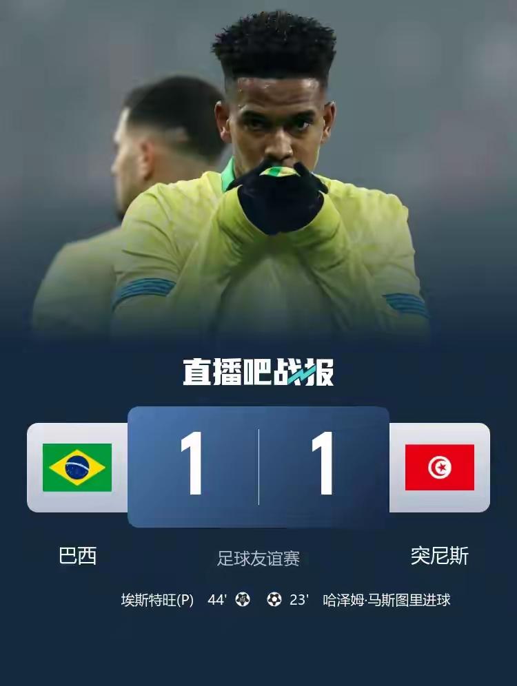 哇!巴西小将埃斯特万太亮眼了吧! 友谊赛巴西对突尼斯这场比赛,表现不错的还是埃斯特万,队友们信任他,让他罚点球,结果埃斯特万也很争气,还是那么稳妥,罚进了。 还有另外一名小将罗克也不错,为球队创造了一个点球,可惜的是老将帕奎塔把点球罚飞了,真是可惜了。 这场比赛巴西对突尼斯没赢下也正常,突尼斯在世界杯预选赛时,成绩也很突出(9场未输一场零失球)。 希望接下来的巴西队各种比赛,在安帅的率领下,会变得越来越好。 加油加油加油!🇧🇷! 友谊赛-巴西1-1突尼斯 米利唐造点+伤退埃斯特旺点射帕奎塔失点。巴西