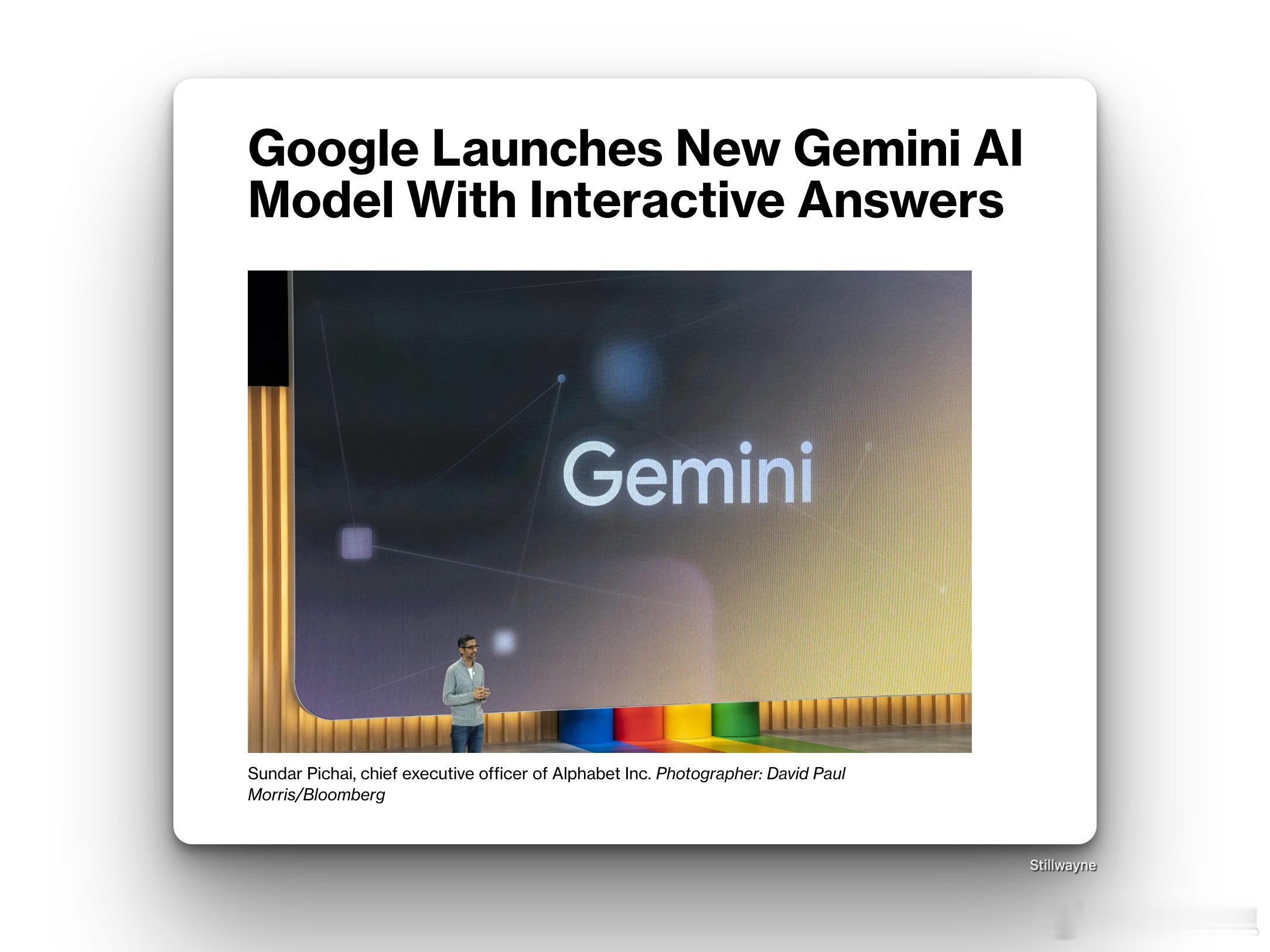 Google 发布 Gemini3,立即应用于谷歌所有主要产品。谷歌推出了其人工智能模型Gemini的更新版本,高管们表示,该模型在推理和编码能力方面实现了“巨大飞跃”。新款人工智能Gemini 3将立即应用于谷歌所有主要产品,包括搜索,并能以交互式图形回答问题。谷歌表示,Gemini 3与其前代产品一样,可以处理文本、图像和其他媒体,并能解决复杂的科学和数学问题。首席执行官劈柴周二在一份声明中表示,Gemini 3的推理和响应能力已显著提升。