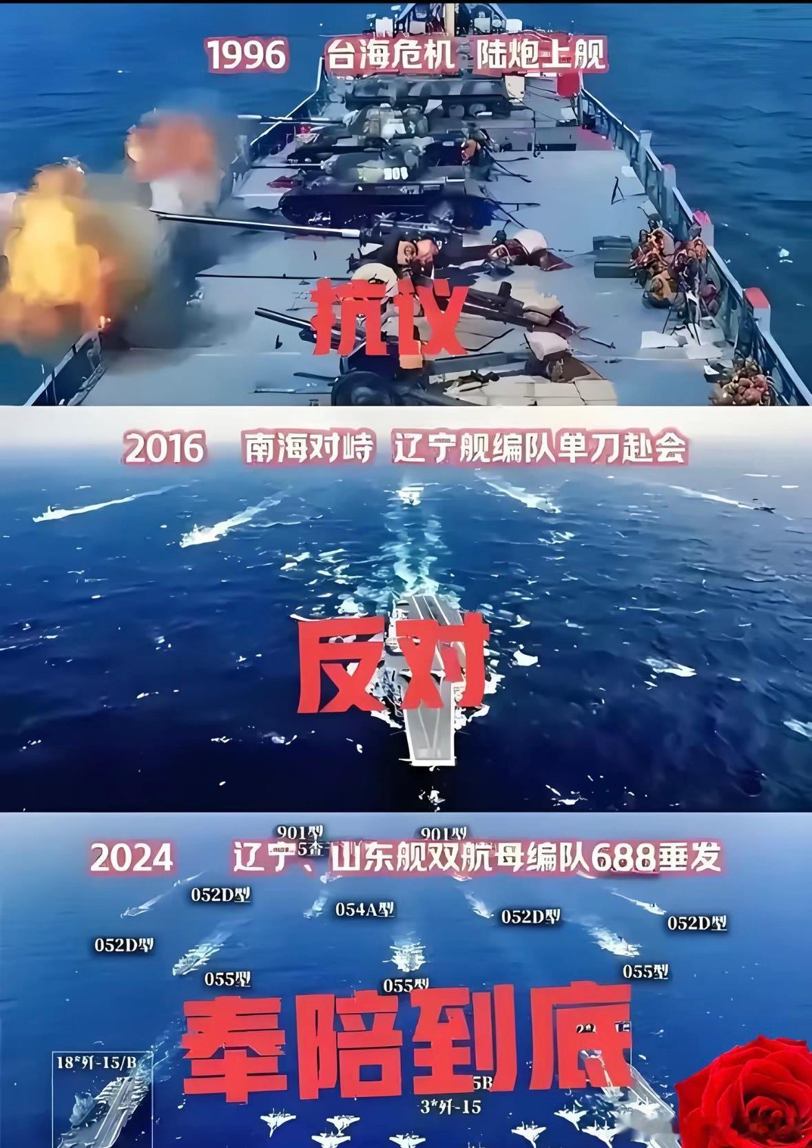 从1996年陆炮上舰到2016年辽宁舰单刀赴会我们用了20年,从单航母编队到三个航母编队我们只用了9年,从现在开始没人能和我们叫板,这就是实力