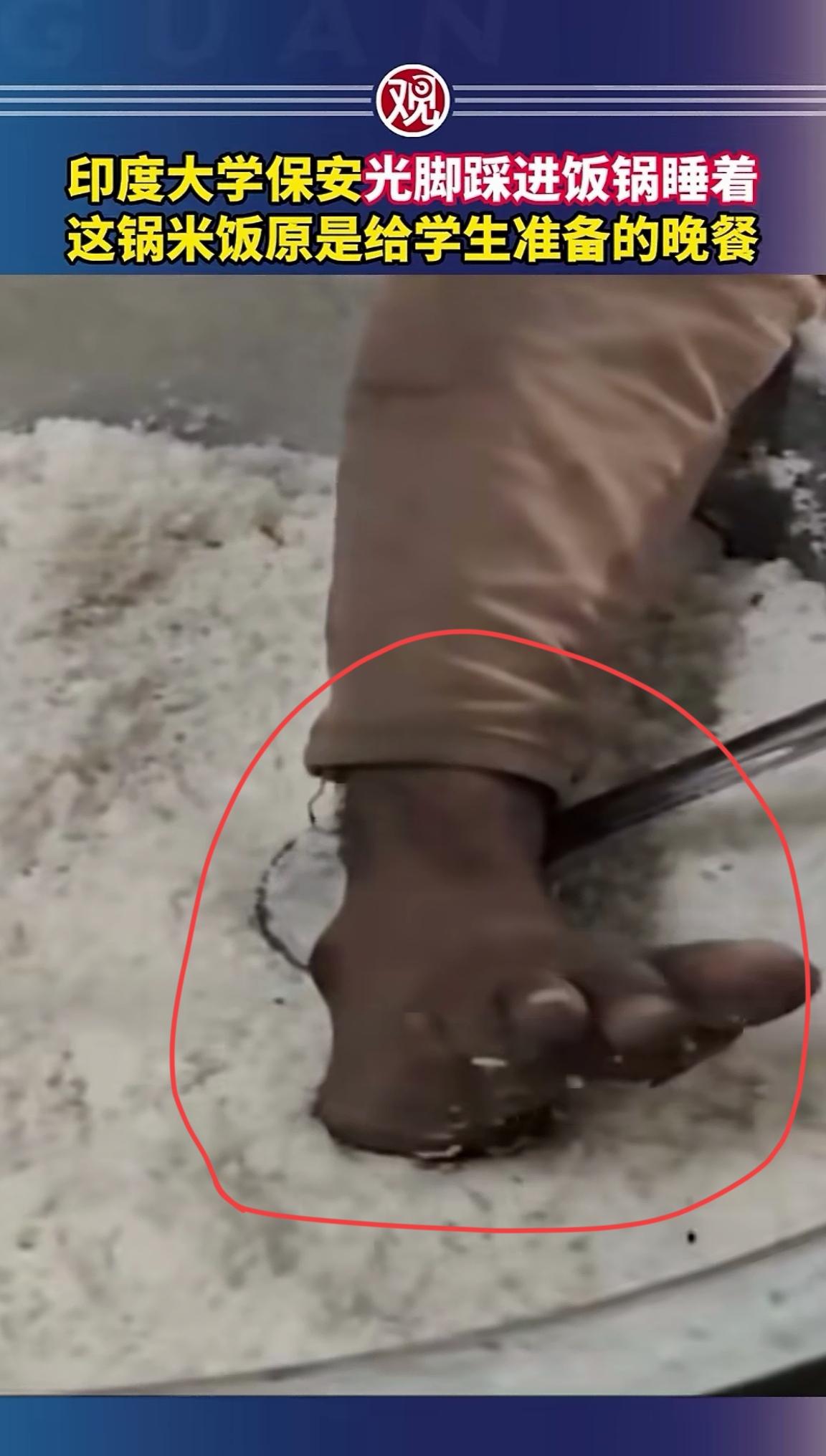 印度人的大黑脚丫放进米饭锅里,莫老仙如果看到都能气的翻白眼。 11月17日印度电视台报道,印度大学保安睡觉时把大黑脚🦶,放进了学生晚餐的米饭锅里。 全垃圾国哗然,事件曝光后该保安以被大学辞退。 这所学校的大学生们,这顿晚餐吃的心里可真是五味杂陈啊。 保安这骚操作不知道以前有没有做过?想想都让人七上八下。