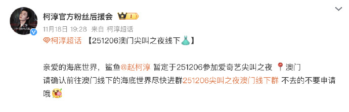 白鹿、邓为、张凌赫、侯明昊、曾舜晞、刘学义、祝绪丹、丞磊、赵柯淳确定出席2025爱奇艺尖叫之夜