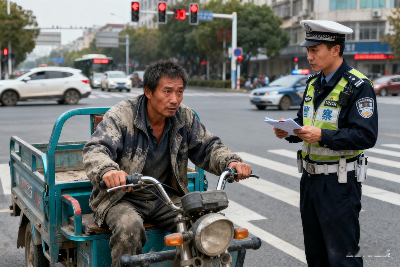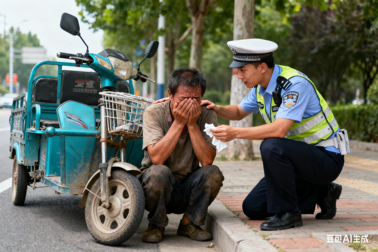 交警暖哭了全网!农民工违规后哭着哀求,接下来的一幕让人破防 “能放我一马吗?我有胃癌,就想给孩子多赚点钱,下次真的不敢了!” 路口的车流还在穿梭,农民工大哥攥着布满老茧的双手,眼泪顺着黝黑粗糙的脸颊往下淌,声音带着难以抑制的哽咽。他刚骑着满载货物的电动三轮车闯了红灯,被执勤交警拦了下来。原本以为会迎来一顿批评和罚款,可实在走投无路的他,只能把藏在心里的苦处说了出来。 交警小哥当场就愣住了,手里的罚单本停在半空。他看着眼前这位大哥——衣服上沾着灰尘和水泥渍,鞋子磨得发亮,单薄的外套裹着瘦削的身躯,眼里满是无助和哀求。谁能想到,这个看似违规的农民工,背后藏着这样沉重的秘密。 短暂的沉默后,交警先扶着大哥到路边安全地带坐下,语气柔和地说:“大哥,您先别着急,慢慢说。” 经过耐心询问才知道,大哥今年快50岁了,查出胃癌后一直瞒着家人,偷偷吃药控制病情。孩子还在上学,家里的开销全靠他打零工、拉货维持。这次是为了赶一个急单,想多赚几十块钱给孩子买资料,一时心急才闯了红灯。 了解情况后,交警的做法让在场的人都暖到了心里。他没有开罚单,反而从口袋里掏出几百块钱塞给大哥:“大哥,这钱您拿着,先去买点好吃的补补身体。违规确实不对,下次一定要注意安全,您的平安比什么都重要。” 随后,他还帮大哥检查了电动三轮车的刹车和灯光,反复叮嘱他路上慢点开,有困难可以随时找交警求助。 大哥捧着那叠带着体温的钱,哭得更凶了,嘴里不停地说着“谢谢”。这一幕被路过的市民拍了下来,发到网上后迅速刷屏,无数网友被暖哭、破防:“交警小哥太善良了,既有原则又有温度”“农民工大哥太不容易了,为了孩子硬生生扛下所有病痛”“这才是正能量!执法不是冷冰冰的,而是带着人情味的”。 有网友说,交警的做法让我们看到了执法的温度。他没有因为违规就一刀切,而是选择倾听背后的故事,用善意化解了矛盾。而农民工大哥在困境中依然想着给孩子赚钱,这份父爱也让人动容。其实生活里总有不期而遇的温暖,总有默默坚守的善良。 执法的意义从来不是惩罚,而是引导和守护。这位交警用行动告诉我们,规则之外,还有人情;严肃之下,更有温柔。而那些在生活中咬牙坚持的人,也值得被世界温柔以待。愿我们都能多一份理解,多一份善意,让这个世界因为我们的存在,变得更加温暖。