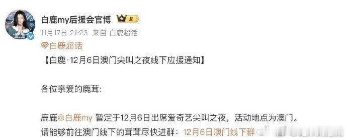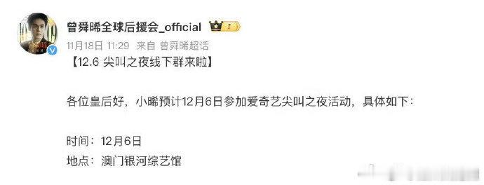 尖叫之夜全阵容值得期待!多名艺人齐聚澳门,12月6日共赴这场星光之约。
