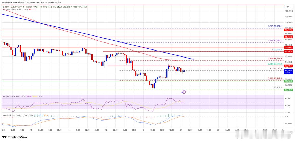 比特币最近跌得有点猛,目前在 89,250 美元附近找到支撑。短期内虽然有反弹尝试,但向上压力不小,93,500 和 94,200 美元附近仍是空头防守的关键点。如果突破 95,000 美元,多头或许还有机会,但跌破 90,700 美元,短期下行可能加速。市场现在处在多空拉锯的关键时刻。