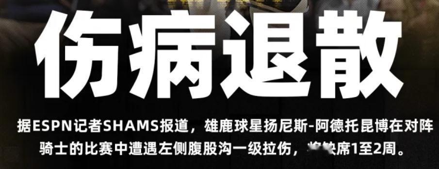 万幸啊! 年轻就是好。 Shams:字母哥遭遇腹股沟一级拉伤,将缺席1-2周。 换其他球员,没几个月,这伤病,无法退却。 乍一看,字母哥也不年轻了,快31了。 巅峰也就2-3年了,职业生涯后期,他这种打法,也会逐渐地被边缘化。 职业球员33岁,也是一道坎,在这个期间,身体开始走下坡路,再怎么练,也只是保持不下滑而已。 想进步很难。 当然,说的是肉身。至于,技术的话,大把进入33岁之后,技术才大成者。