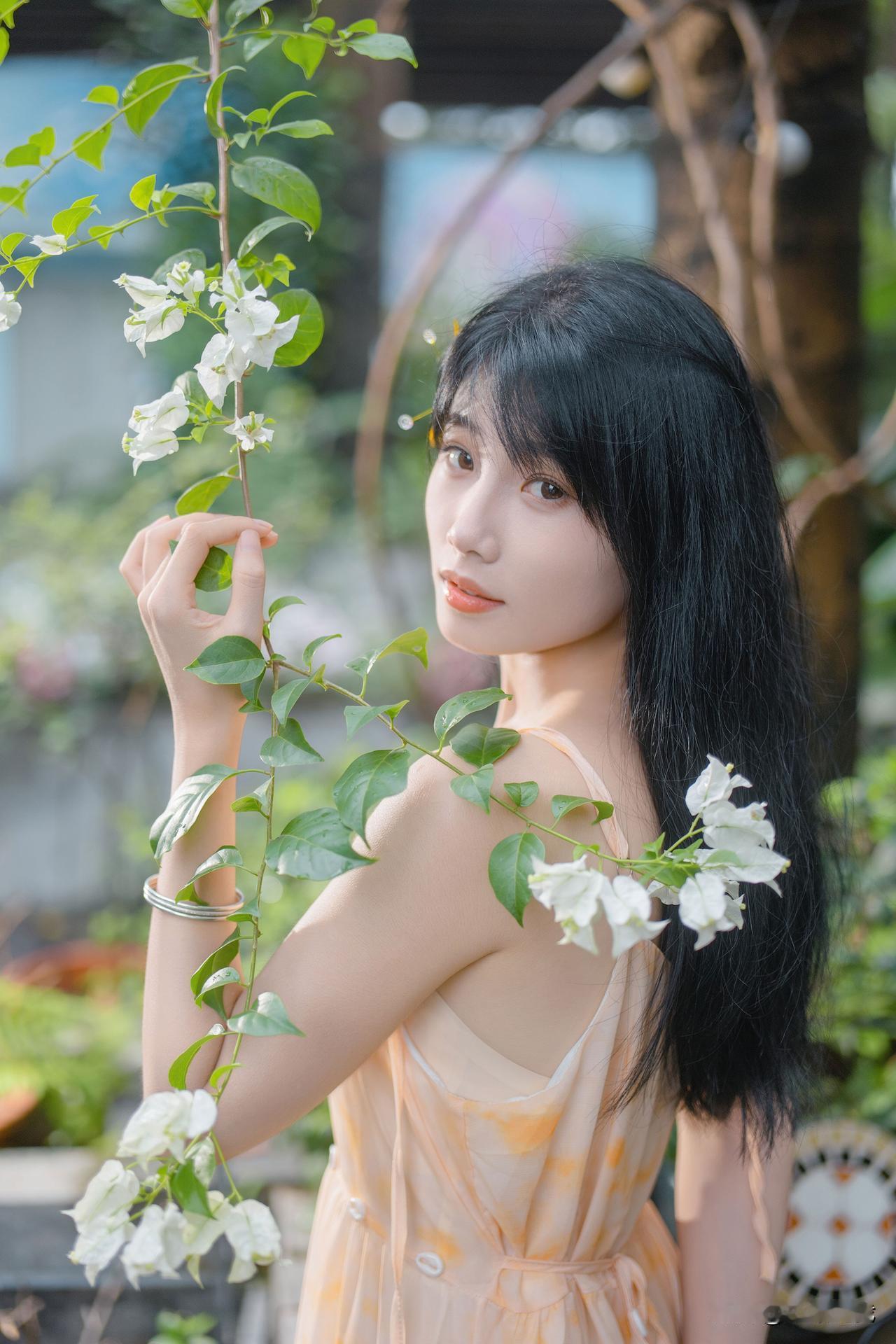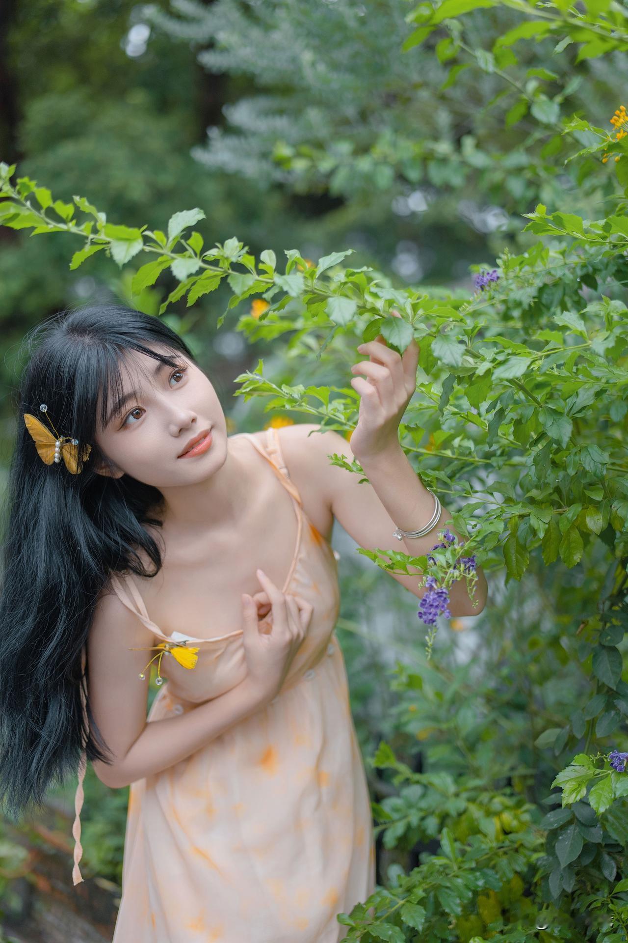 秋风里浸着草木的软香,蝴蝶发夹栖在发梢,手里的鲜花轻轻晃着,把寻常日子揉成了浅淡的温柔。