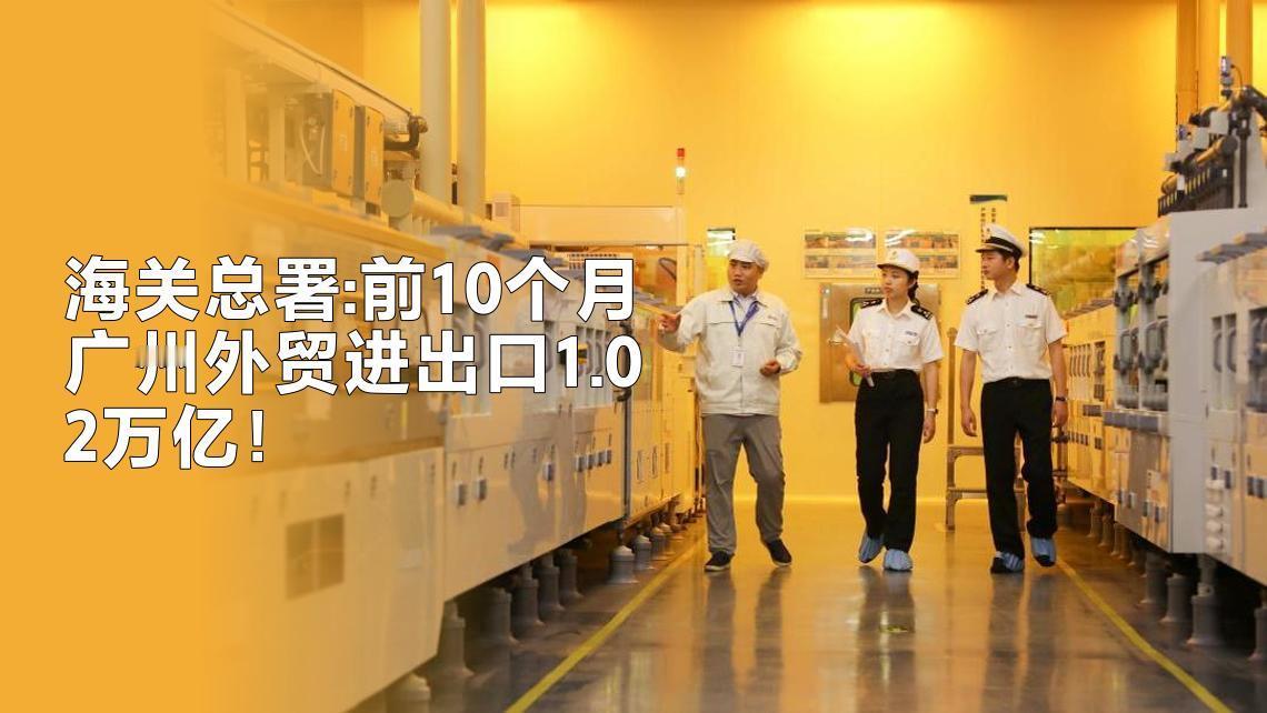 海关总署:前10个月,广州市外贸进出口总值达1.02万亿元,创下历史同期新高,同比增长12.1%,外贸规模历史上首度在前10月突破万亿,月度进出口连续4个月运行在1000亿元以上的较高水平。
