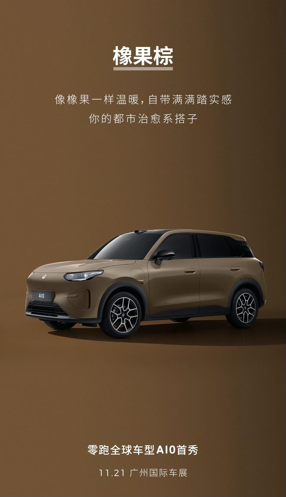 零跑A10广州车展要首秀了,目前发布的2个外观颜色,大家感觉怎么样?第一个是海苔绿,另外一个则是橡果棕,凭我的第六感,在外观颜色上面的命名颇有一点俏皮可爱的感觉,所以这款车的定位,大家可以延展一下 不过这两年零跑汽车是很爱用绿色的,之前的C10和C16都是有琉璃翠的那种绿色,颜色会更深,视觉的深邃度会更多,从图片上来看这款全新的A10的海苔绿,更加活泼一些。 我发现车企是真的很爱用绿色,我本人也很爱绿色的,感觉绿色的外观漆在情感的共鸣度上好像会更多一些,也许自然界生命是绿色的,和我们最直接的对话,所以我们多少还是习惯了这种颜色的多倍的存在感~ 另外一款橡果棕,是零跑汽车第一次使用的颜色,这个颜色有一种童趣感,不知道大家有没有同感和我~