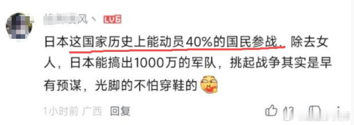 《日本历史上能动员40%的国民》得了,看以色列,八九百万人口动员几十万预备役,马上就吃不上饭了。鉴定为军盲。