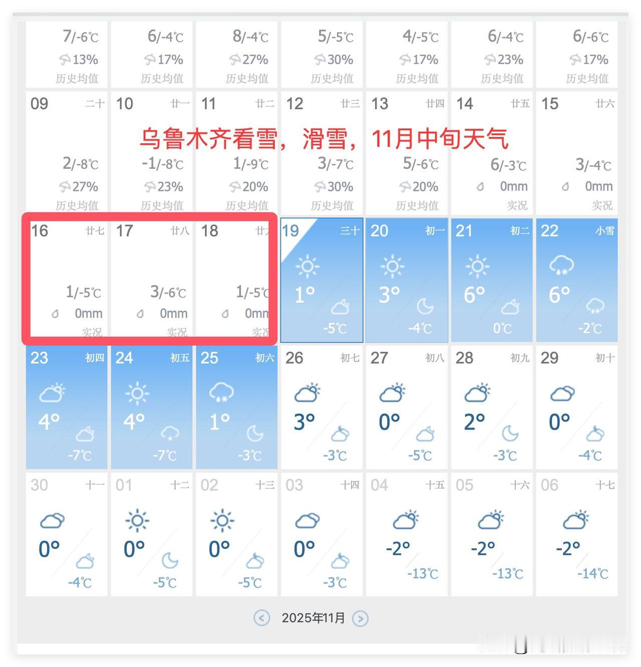 你敢相信吗?大降温的重庆主城区,居然穿新疆乌鲁木齐的同样的衣服?!嗯,11月中下旬,去大雪后的乌鲁木齐看雪滑雪,所穿着的衣服,基本上和11月18日19日大降温后的重庆主城区,一模一样! 也就是说,重庆人冬季穿的衣服,在11月中下旬去新疆乌鲁木齐看雪滑雪,完全是可以扛得住的哦! 嗯嗯,11月18日,重庆主城区最低气温7度……最近几天,乌鲁木齐最低气温-7度……嗯,零下7度。 零上7度,零下7度,都是穿一样的衣服,完全没有问题! 太棒了! 不过,我看了看12月新疆乌鲁木齐的平均温度,白天-5度左右,晚上-15度左右……那就……到时候,12月,重庆人如果要去新疆看雪滑雪,就不能只穿重庆的衣服了!嗯,必须要再套一件大衣或者长款羽绒服啦! 嗯嗯,最近几天,在乌鲁木齐,我穿的衣服,就是秋衣秋裤,长裤长袖,再加一件850标准的鹅绒超薄羽绒服。光线摄影世界曾兰谈天说地 你好乌鲁木齐 2025你好乌鲁木齐
