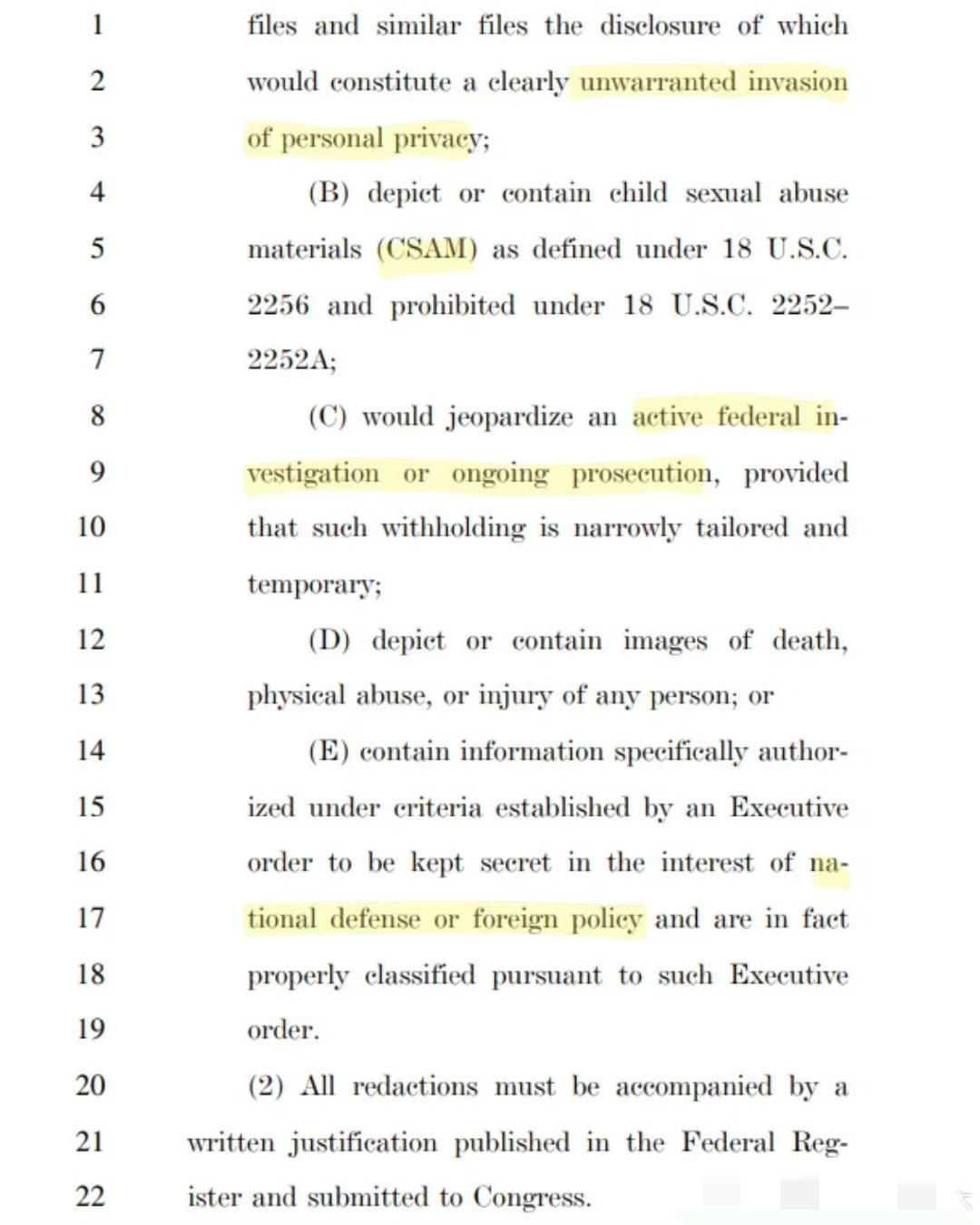 《爱泼斯坦档案》法案即将提交给特朗普签署——该法案允许司法部长帕姆·邦迪以国家安全和隐私为由“扣留或编辑”文件,否则将危及正在进行的调查。 (这个是参众两院民主党人和共和党人一致赋予司法部长的权力)