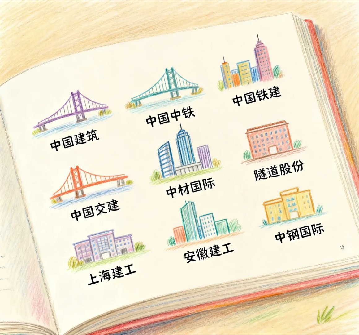 基建风口来袭!工程建筑板块10只核心标的解析,布局价值凸显随着稳增长政策持续发力、城市更新与“一带一路”建设加速推进,工程建筑板块迎来多重利好催化。以下10只核心标的凭借业务壁垒、订单储备或细分赛道优势,具备较高布局价值:1. 中国建筑:全球工程承包龙头企业,业务覆盖工程建设、投资开发等核心板块,房建领域市占率稳居行业前列。业绩常年保持稳健增长,股息率表现亮眼,叠加强大的资源整合能力与抗风险属性,成为板块防御性配置核心。2. 中国中铁:基础设施建设领域标杆企业,在铁路、公路、市政工程等领域积累了丰富的项目经验,深度参与国家重点工程建设。订单储备充足且持续落地,凭借全产业链布局与雄厚技术实力,充分受益于基建投资扩容。3. 中国铁建:以工程承包为核心主业,业务范围涵盖铁路、市政、轨道交通等多个基建领域,市场份额与品牌影响力稳居行业第一梯队。财务状况稳健,项目执行能力突出,在大型基建项目中竞争力显著。4. 中国电建:水利水电工程建设绝对领军者,同时在新能源工程、抽水蓄能等领域布局深厚。随着全球清洁能源转型加速,公司在光伏、风电等新能源基建领域的竞争力持续释放,业务增长空间广阔。5. 中国交建:全球领先的基础设施综合服务商,在公路、桥梁、港口等工程建设领域具备技术与规模优势。海外业务布局广泛,深度契合“一带一路”建设战略,海外订单持续落地,成为业绩增长重要引擎。6. 中材国际:全球水泥工程领域龙头,技术实力与市场份额均处于行业领先地位,海外订单储备丰富。盈利水平稳定,股息率表现优异,同时受益于全球基建复苏与水泥行业技术升级需求。7. 隧道股份:专注隧道及地下工程细分赛道,在城市轨道交通、越江隧道等领域具备核心技术与项目经验。作为上海等一线城市基础设施建设的核心参与者,充分享受城市更新与轨交建设红利,股息率具备吸引力。8. 上海建工:区域基建龙头企业,承担上海半数以上重大工程建设任务,业务覆盖超高层建筑、桥梁、市政等多个领域。创新布局金矿开发等高盈利业务,形成“基建+资源”双轮驱动格局,综合实力强劲。9. 安徽建工:业务涵盖建筑施工、工程设计咨询等全链条服务,深度参与区域内城市更新、交通基建等项目,区域资源优势显著。随着地方基建投资持续加码,公司订单与业绩有望稳步增长,成长性突出。10. 中钢国际:钢铁工程领域专业服务商,在钢铁行业技术改造、产能升级等领域具备独特竞争优势。依托国内钢铁行业升级需求与海外市场拓展,订单获取能力持续提升,业绩增长确定性较强。