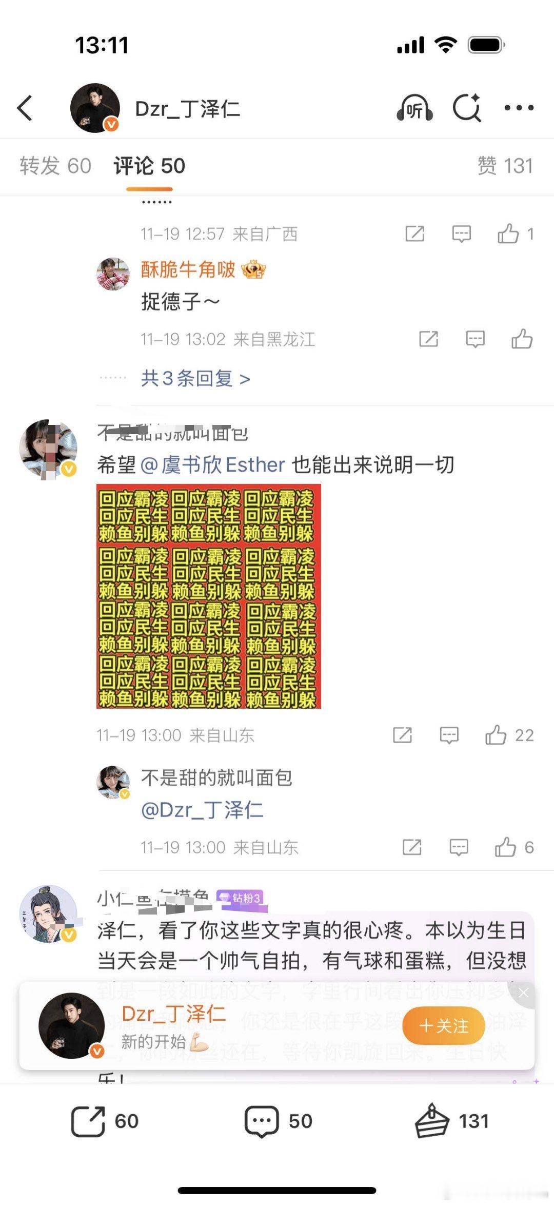 真的觉得老露粉有点大病丁泽仁发微博解释唯一的姐在他微博露粉在下面又蹦又跳看了一下评论区,最早16分露粉提无关内容19分鱼丝开始反击