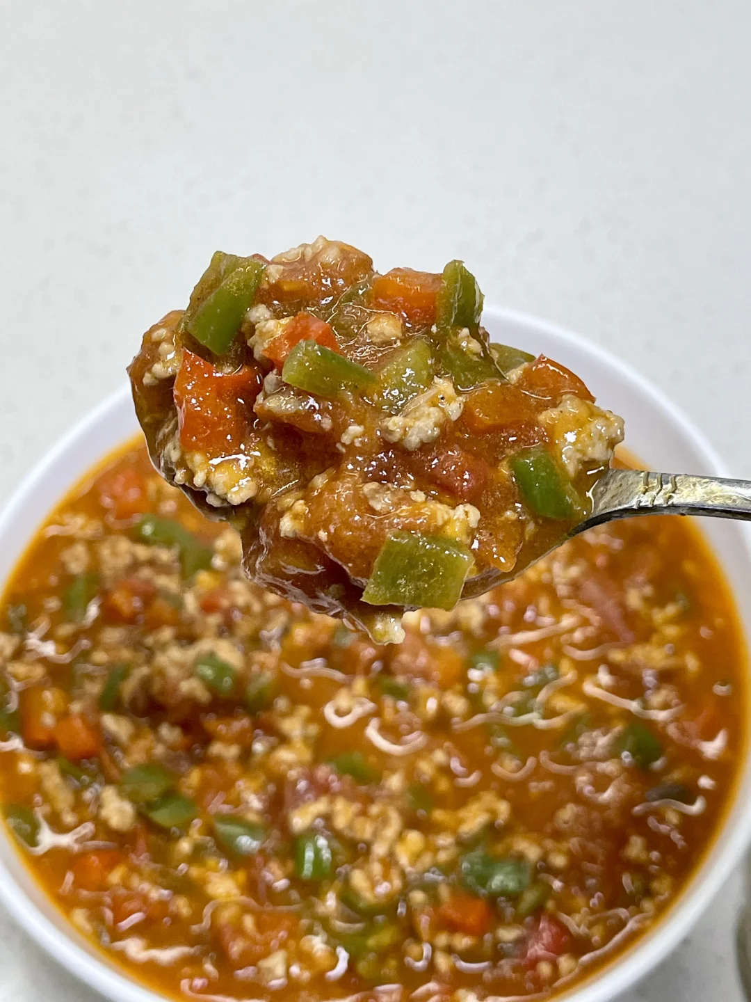 1️⃣:油热放入肉末炒变色,放入姜蒜末炒香