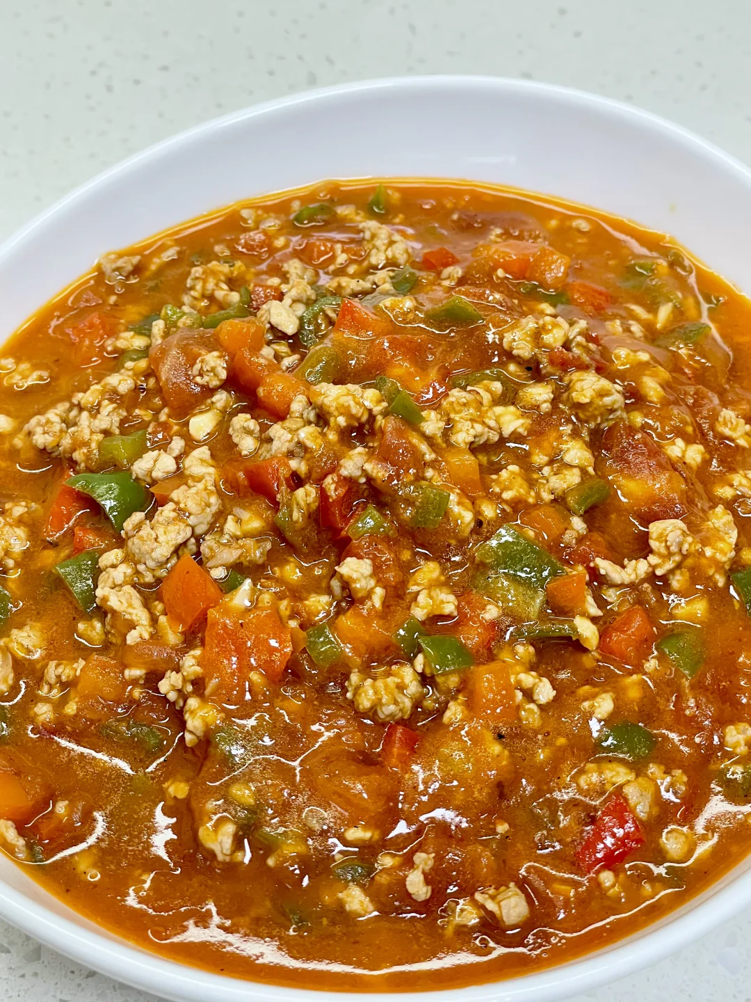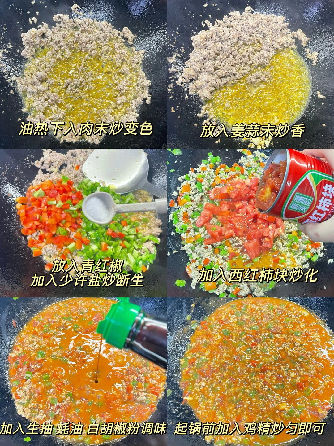 2️⃣:放入青红椒碎,加少许盐炒断生,倒入西红柿块炒化,调味加生抽 蚝油 白胡椒粉 少许盐,起锅前加入鸡精炒匀即可