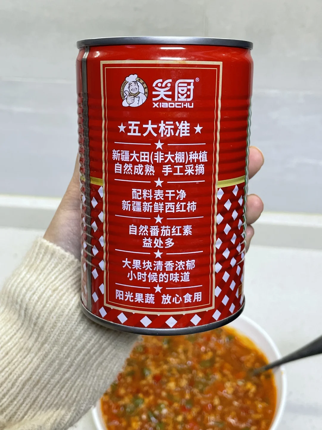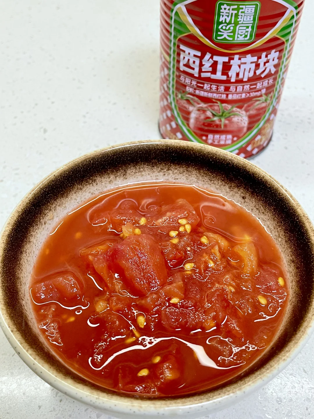 不知道有没有跟我一样特别爱吃西红柿的姐妹,但很不容易买到能炒出汁的西红柿,今天做菜用的笑厨的西红柿块,开盖就能闻到一股自然的果香味,西红柿味很浓郁,而且配料表很干净,只有新疆新鲜的西红柿块,汁水还很饱满,不用去皮切块,开罐即用,西红柿脑袋怒冲[派对R]